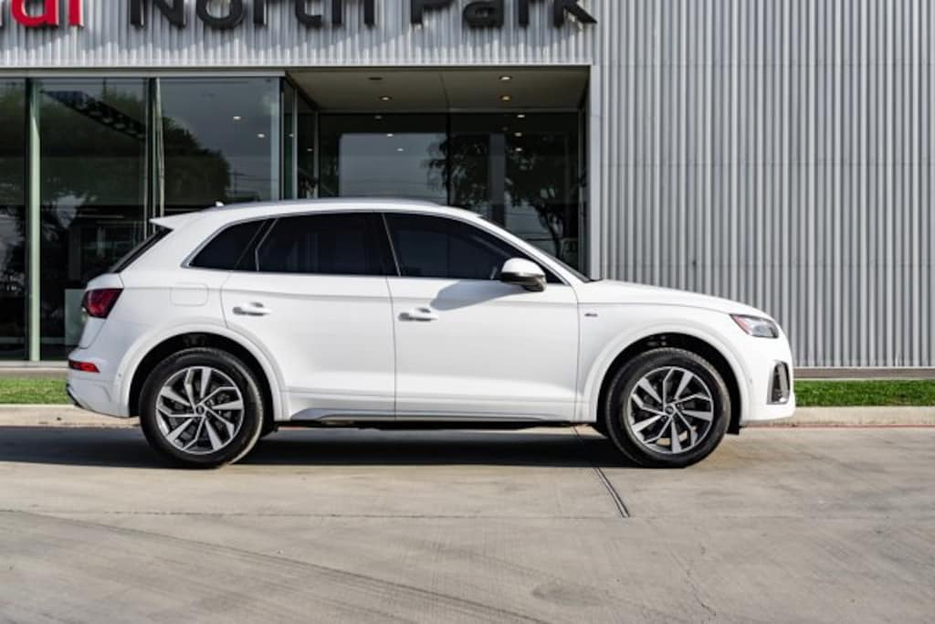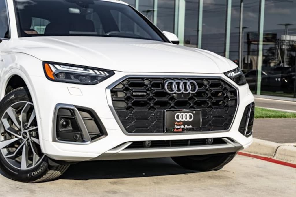 Audi North Park is pleased to offer this great 2023 Audi Q5 45 S line Prestige. Well equipped with Convenience Package (Audi Advanced Key, Auto-Dimming Power Folding Exterior Mirrors, Driver Seat Memory, Heated Steering Wheel, and SiriusXM w/360L), LED Interior Lighting Plus Package, Navigation Package (Audi Connect PLUS and MMI Navigation Plus), Prestige Package (Audi Active Lane Assist, Audi Phone Box, Audi Virtual Cockpit Plus, Bang & Olufsen Sound System w/3D Sound, Dual Pane Acoustic Glass for Front Side Windows, Hands-On Detection Steering Wheel, Head-Up Display, Heated & Cooled Front Cup Holder, Heated Rear Seats, Leatherette Covered Center Console & Door Armrests, Matrix-Design LED Headlights w/Headlight Washers, Panoramic Sunroof, Park Assist, Power Adjustable Steering Column, Top View Camera System, Traffic Jam Assist, Traffic Sign Recognition, and Wheels: 19 5-Double-Arm Design Bi-Color Finish), Warm Weather Package (Manual Rear Side Window Sunshades and Ventilated Front Sport Seats w/4-Way Power Lumbar), ABS brakes, Exterior Parking Camera Rear, Heated 8-Way Power Front Bucket Seats, Heated front seats, Power Liftgate, Split folding rear seat, 10 Speakers, 4-Wheel Disc Brakes, 5.302 Axle Ratio, Air Conditioning, All-Weather Floor Mats, Alloy wheels, AM/FM radio, Audi Beam-Rings, Audi Guard Protection Kit, Auto-dimming Rear-View mirror, Automatic temperature control, Brake assist, Bumpers: body-color, Cargo Mat, Compass, Delay-off headlights, Driver door bin, Driver vanity mirror, Dual front impact airbags, Dual front side impact airbags, Electric Powered Steering Column Delete (DISC), Electronic Stability Control, Emergency communication system: Audi connect CARE, Four wheel independent suspension, Front anti-roll bar, Front Bucket Seats, Front Center Armrest, Front dual zone A/C, Front fog lights, Front reading lights, Garage door transmitter: HomeLink, Genuine wood console insert, Genuine wood dashboard insert, Genuine wood door panel insert, Gray-Brown Birch Natural Wood Inlays, Heated door mirrors, Illuminated entry, Illuminated Front Audi Rings, Leather Seating Surfaces, Leather Shift Knob, Low tire pressure warning, Occupant sensing airbag, Outside temperature display, Overhead airbag, Overhead console, Panic alarm, Passenger door bin, Passenger vanity mirror, Power door mirrors, Power driver seat, Power passenger seat, Power steering, Power windows, Privacy Trunk Cover, Radio data system, Radio: Audi Sound System, Rain sensing wipers, Rear air conditioning, Rear anti-roll bar, Rear fog lights, Rear reading lights, Rear seat center armrest, Rear window defroster, Rear window wiper, Remote keyless entry, Roof rack, Security system, Speed control, Speed-sensing steering, Speed-Sensitive Wipers, Spoiler, Steering wheel mounted audio controls, Tachometer, Telescopi