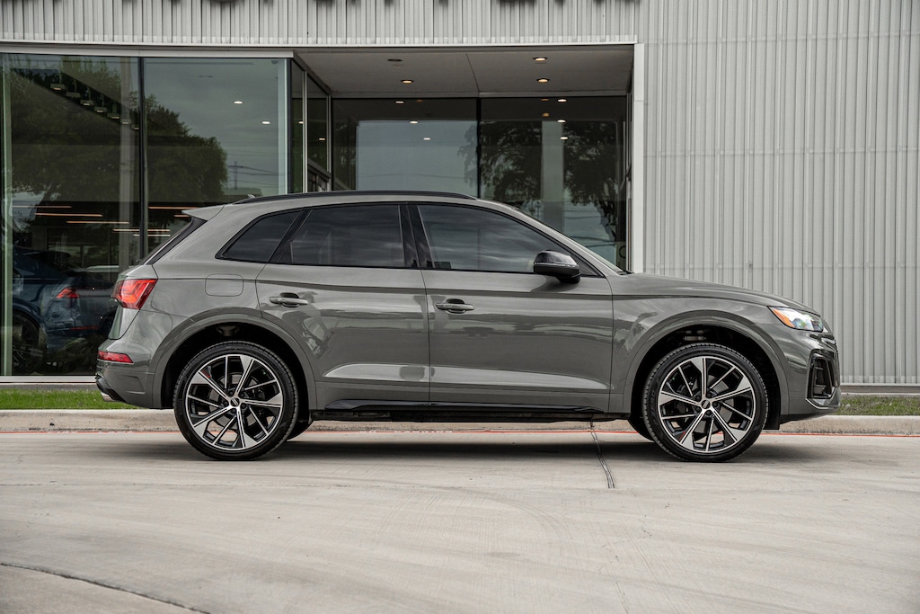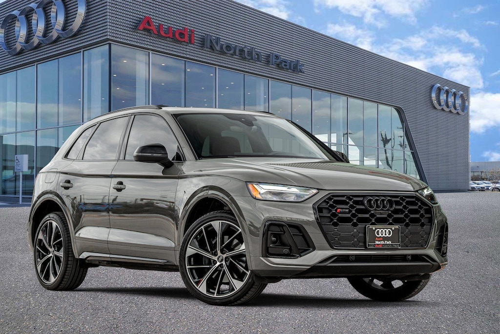 Audi North Park is proud to offer this good-looking 2024 Audi SQ5 Premium Plus. Well equipped with 21 Black Optic Wheel Package (Wheels: 21 5-V Spoke-Offset Design), Black Optic Package (Black Exterior Mirror Housings, Black Exterior Trim, and Wheels: 20 5-V Spoke-Star Design), Convenience Package (Audi Advanced Key, Auto-Dimming Power Folding Exterior Mirrors, Driver Seat Memory, and SiriusXM w/360L), Fine Nappa Leather Seats (Fine Nappa Leather Seating Surfaces), Premium Plus Package (Audi Virtual Cockpit Plus, Bang & Olufsen 3D Sound System, Leatherette Covered Center Console & Door Armrests, Panoramic Sunroof, and Top View Camera System), ABS brakes, Auto High-beam Headlights, Exterior Parking Camera Rear, Heated Front Sport Seats, Heated steering wheel, Power Liftgate, Sport Exhaust Tips, 10 Speakers, 3.204 Axle Ratio, 4-Wheel Disc Brakes, Adaptive suspension, Air Conditioning, Alloy wheels, AM/FM radio, AM/FM Stereo, Audi Black Rings & Badges, Auto-dimming Rear-View mirror, Automatic temperature control, Brake assist, Bumpers: body-color, Compass, Delay-off headlights, Driver door bin, Driver vanity mirror, Dual front impact airbags, Dual front side impact airbags, Electronic Stability Control, Emergency communication system: Audi connect CARE, Four wheel independent suspension, Front anti-roll bar, Front Bucket Seats, Front Center Armrest, Front dual zone A/C, Front fog lights, Front reading lights, Garage door transmitter: HomeLink, Heated door mirrors, Heated front seats, Illuminated entry, Leather Shift Knob, Leather/Dinamica Seating Surfaces, Low tire pressure warning, Occupant sensing airbag, Outside temperature display, Overhead airbag, Overhead console, Panic alarm, Passenger door bin, Passenger vanity mirror, Power door mirrors, Power driver seat, Power passenger seat, Power steering, Power windows, Radio data system, Rain sensing wipers, Rear air conditioning, Rear anti-roll bar, Rear fog lights, Rear reading lights, Rear seat center armrest, Rear window defroster, Rear window wiper, Remote keyless entry, Roof rack, Security system, Speed control, Speed-sensing steering, Speed-Sensitive Wipers, Split folding rear seat, Spoiler, Sport steering wheel, Steering wheel mounted audio controls, Tachometer, Telescoping steering wheel, Tilt steering wheel, Traction control, Trip computer, Turn signal indicator mirrors, Variably intermittent wipers, and Wheels: 20 10-Spoke-Star Design.