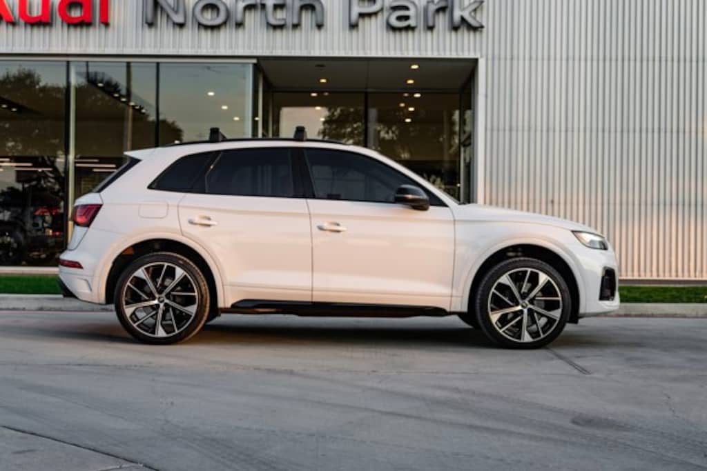 Audi North Park is very proud to offer this great 2024 Audi SQ5 Premium Plus. Well equipped with 21 Black Optic Wheel Package (Wheels: 21 5-V Spoke-Offset Design), Black Optic Package (Black Exterior Mirror Housings, Black Exterior Trim, and Wheels: 20 5-V Spoke-Star Design), Convenience Package (Audi Advanced Key, Auto-Dimming Power Folding Exterior Mirrors, Driver Seat Memory, and SiriusXM w/360L), Fine Nappa Leather Seats (Fine Nappa Leather Seating Surfaces), Premium Plus Package (Audi Virtual Cockpit Plus, Bang & Olufsen 3D Sound System, Leatherette Covered Center Console & Door Armrests, Panoramic Sunroof, and Top View Camera System), ABS brakes, Auto High-beam Headlights, Exterior Parking Camera Rear, Four wheel independent suspension, Heated Front Sport Seats, Heated steering wheel, Power Liftgate, Split folding rear seat, Sport Exhaust Tips, Sport steering wheel, 10 Speakers, 3.204 Axle Ratio, 4-Wheel Disc Brakes, Adaptive suspension, Air Conditioning, Alloy wheels, AM/FM radio, AM/FM Stereo, Audi Black Rings & Badges, Audi Cargo Box, Audi S Beam - Front Doors Only, Auto-dimming Rear-View mirror, Automatic temperature control, Brake assist, Bumpers: body-color, Compass, Delay-off headlights, Driver door bin, Driver vanity mirror, Dual front impact airbags, Dual front side impact airbags, Electronic Stability Control, Emergency communication system: Audi connect CARE, Front anti-roll bar, Front Bucket Seats, Front Center Armrest, Front dual zone A/C, Front fog lights, Front reading lights, Garage door transmitter: HomeLink, Heated door mirrors, Heated front seats, Illuminated entry, Leather Shift Knob, Leather/Dinamica Seating Surfaces, Low tire pressure warning, Occupant sensing airbag, Outside temperature display, Overhead airbag, Overhead console, Panic alarm, Passenger door bin, Passenger vanity mirror, Power door mirrors, Power driver seat, Power passenger seat, Power steering, Power windows, Radio data system, Rain sensing wipers, Rear air conditioning, Rear anti-roll bar, Rear fog lights, Rear reading lights, Rear seat center armrest, Rear window defroster, Rear window wiper, Remote keyless entry, Roof rack, Security system, Speed control, Speed-sensing steering, Speed-Sensitive Wipers, Spoiler, Steering wheel mounted audio controls, Tachometer, Telescoping steering wheel, Tilt steering wheel, Traction control, Trip computer, Turn signal indicator mirrors, Variably intermittent wipers, and Wheels: 20 10-Spoke-Star Design.