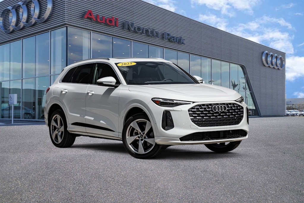 Audi North Park is very proud to offer this outstanding-looking 2025 Audi Q5 2.0T Premium Plus. Well equipped with 20 Wheel Package w/5-Arm Design (Wheels: 20 5-Arm Design), Brown Warm Weather Package (Light Brown Walnut Trunk Natural Wood Inlays, Manual Rear Side Window Sunshades, and Ventilated Front Sport Seats), ABS brakes, Auto High-beam Headlights, Exterior Parking Camera Rear, Heated Front Bucket Seats, Navigation system: Audi Navigation Plus, Power Liftgate, Power passenger seat, 10 Speakers, 4-Wheel Disc Brakes, Air Conditioning, Alloy wheels, AM/FM radio: SiriusXM w/ 360L, Auto tilt-away steering wheel, Auto-dimming door mirrors, Auto-dimming Rear-View mirror, Automatic temperature control, Brake assist, Bumpers: body-color, Compass, Delay-off headlights, Driver door bin, Driver vanity mirror, Dual front impact airbags, Dual front side impact airbags, Electronic Stability Control, Emergency communication system: Audi connect CARE, Four wheel independent suspension, Front anti-roll bar, Front Bucket Seats, Front Center Armrest, Front dual zone A/C, Front fog lights, Front reading lights, Garage door transmitter: HomeLink, Genuine wood console insert, Genuine wood dashboard insert, Genuine wood door panel insert, Heated door mirrors, Heated front seats, Illuminated entry, Leather Seating Surfaces, Leather steering wheel, Low tire pressure warning, Memory seat, Occupant sensing airbag, Outside temperature display, Overhead airbag, Overhead console, Panic alarm, Passenger door bin, Passenger vanity mirror, Power door mirrors, Power driver seat, Power steering, Power windows, Radio data system, Radio: MMI Navigation Plus, Rain sensing wipers, Rear air conditioning, Rear anti-roll bar, Rear fog lights, Rear reading lights, Rear seat center armrest, Rear window defroster, Rear window wiper, Remote keyless entry, Roof rack, Security system, Speed control, Speed-sensing steering, Speed-Sensitive Wipers, Split folding rear seat, Spoiler, Steering wheel mounted audio controls, Tachometer, Telescoping steering wheel, Tilt steering wheel, Traction control, Trip computer, Turn signal indicator mirrors, Variably intermittent wipers, and Wheels: 18 5-Arm-Twist Design.