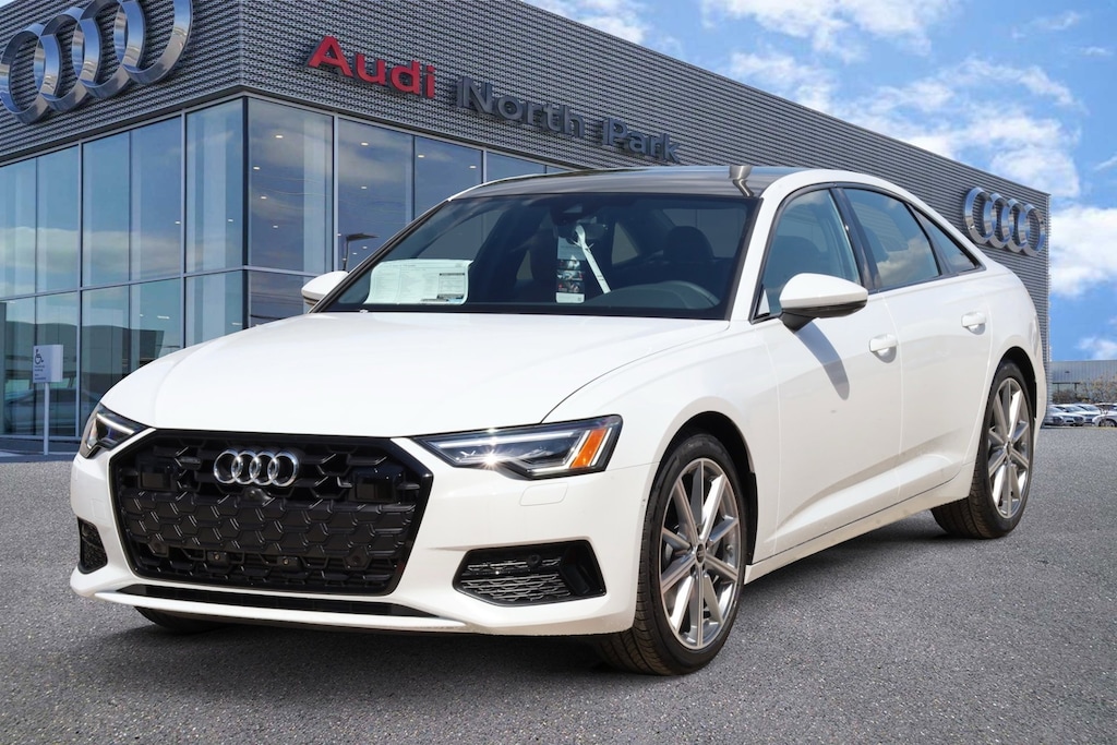 Audi North Park is proud to offer this handsome 2025 Audi A6 45 Premium Plus. Well equipped with 10 Speakers, 4-Wheel Disc Brakes, ABS brakes, Air Conditioning, Alloy wheels, AM/FM radio: SiriusXM w/ 360L, Auto High-beam Headlights, Auto tilt-away steering wheel, Auto-dimming door mirrors, Auto-dimming Rear-View mirror, Automatic temperature control, Brake assist, Bumpers: body-color, Compass, Delay-off headlights, Driver door bin, Driver vanity mirror, Dual front impact airbags, Dual front side impact airbags, Electronic Stability Control, Emergency communication system: Audi connect CARE (limited time subscription - acceptance of terms required), Exterior Parking Camera Rear, Four wheel independent suspension, Front anti-roll bar, Front Bucket Seats, Front Center Armrest, Front dual zone A/C, Front fog lights, Front reading lights, Garage door transmitter: HomeLink, Genuine wood console insert, Genuine wood dashboard insert, Genuine wood door panel insert, Heated door mirrors, Heated Front Seats, Heated front seats, Illuminated entry, Knee airbag, Leather Seating Surfaces, Leather Shift Knob, Leather steering wheel, Low tire pressure warning, Memory seat, Navigation system: Audi MMI Navigation plus with Touch Response, Occupant sensing airbag, Outside temperature display, Overhead airbag, Overhead console, Panic alarm, Passenger door bin, Passenger vanity mirror, Power door mirrors, Power driver seat, Power moonroof, Power passenger seat, Power steering, Power windows, Radio data system, Radio: Audi MMI Nav Plus w/MMI Touch Response, Rain sensing wipers, Rear air conditioning, Rear anti-roll bar, Rear reading lights, Rear seat center armrest, Rear side impact airbag, Rear window defroster, Remote keyless entry, Security system, Speed control, Speed-sensing steering, Speed-Sensitive Wipers, Split folding rear seat, Steering wheel memory, Steering wheel mounted audio controls, Tachometer, Telescoping steering wheel, Tilt steering wheel, Traction control, Trip computer, Turn signal indicator mirrors, Variably intermittent wipers, and Wheels: 19 5-Arm Platinum Gray Dynamic Design.