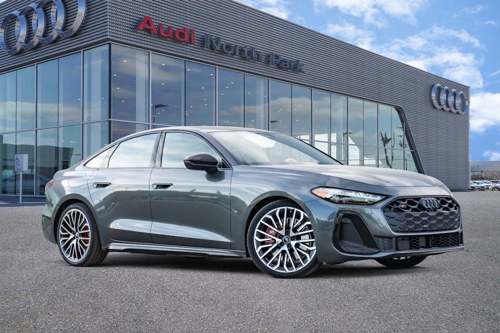 Audi North Park is pumped up to offer this outstanding 2025 Audi All-new S5 3.0T Prestige. Well equipped with 10 Speakers, 4-Wheel Disc Brakes, ABS brakes, Air Conditioning, Alloy wheels, AM/FM radio: SiriusXM w/ 360L, Auto High-beam Headlights, Auto-dimming door mirrors, Auto-dimming Rear-View mirror, Automatic temperature control, Brake assist, Bumpers: body-color, Compass, Delay-off headlights, Driver door bin, Driver vanity mirror, Dual front impact airbags, Dual front side impact airbags, Electronic Stability Control, Emergency communication system: Audi connect CARE, Exterior Parking Camera Rear, Four wheel independent suspension, Front anti-roll bar, Front Bucket Seats, Front Center Armrest, Front dual zone A/C, Front fog lights, Front reading lights, Garage door transmitter: HomeLink, Heated door mirrors, Heated front seats, Heated Front Sport Seats, Heated steering wheel, Illuminated entry, Knee airbag, Leather steering wheel, Leather/Dinamica Seating Surfaces, Low tire pressure warning, Memory seat, Navigation system: MMI Navigation plus, Occupant sensing airbag, Outside temperature display, Overhead airbag, Overhead console, Panic alarm, Passenger door bin, Passenger vanity mirror, Power door mirrors, Power driver seat, Power Liftgate, Power passenger seat, Power steering, Power windows, Radio data system, Radio: Audi Sound System, Rain sensing wipers, Rear air conditioning, Rear anti-roll bar, Rear reading lights, Rear seat center armrest, Rear window defroster, Remote keyless entry, Security system, Speed control, Speed-sensing steering, Speed-Sensitive Wipers, Split folding rear seat, Spoiler, Sport steering wheel, Steering wheel mounted audio controls, Tachometer, Telescoping steering wheel, Tilt steering wheel, Traction control, Trip computer, Turn signal indicator mirrors, Variably intermittent wipers, and Wheels: 19 5-Double-V-Spoke Design Bi-Color Finish.