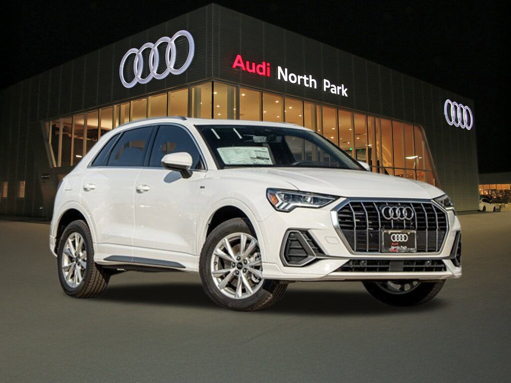 Posted Pricing on all vehicles. Audi North Park is very proud to offer this wonderful-looking 2025 Audi Q3 Premium Plus. Well equipped with 10 Speakers, 4-Wheel Disc Brakes, ABS brakes, Air Conditioning, Alloy wheels, AM/FM radio, Audi smartphone interface (Apple CarPlay/Android Auto), Auto High-beam Headlights, Automatic temperature control, Brake assist, Bumpers: body-color, Delay-off headlights, Driver door bin, Driver vanity mirror, Dual front impact airbags, Dual front side impact airbags, Electronic Stability Control, Emergency communication system: Audi connect CARE, Exterior Parking Camera Rear, Four wheel independent suspension, Front anti-roll bar, Front Bucket Seats, Front Center Armrest, Front dual zone A/C, Front fog lights, Front reading lights, Fully automatic headlights, Heated door mirrors, Heated Front Bucket Seats, Heated front seats, Illuminated entry, Knee airbag, Leather Seating Surfaces, Leather Shift Knob, Leather steering wheel, Low tire pressure warning, Occupant sensing airbag, Outside temperature display, Overhead airbag, Overhead console, Panic alarm, Passenger door bin, Passenger vanity mirror, Power door mirrors, Power driver seat, Power Liftgate, Power moonroof: Panoramic, Power passenger seat, Power steering, Power windows, Radio data system, Radio: Audi Sound System, Rain sensing wipers, Rear air conditioning, Rear anti-roll bar, Rear fog lights, Rear reading lights, Rear seat center armrest, Rear window defroster, Rear window wiper, Remote keyless entry, Speed control, Speed-sensing steering, Split folding rear seat, Spoiler, Steering wheel mounted audio controls, Tachometer, Telescoping steering wheel, Tilt steering wheel, Traction control, Trip computer, Turn signal indicator mirrors, Variably intermittent wipers, and Wheels: 18 5-V-Spoke-S Design.