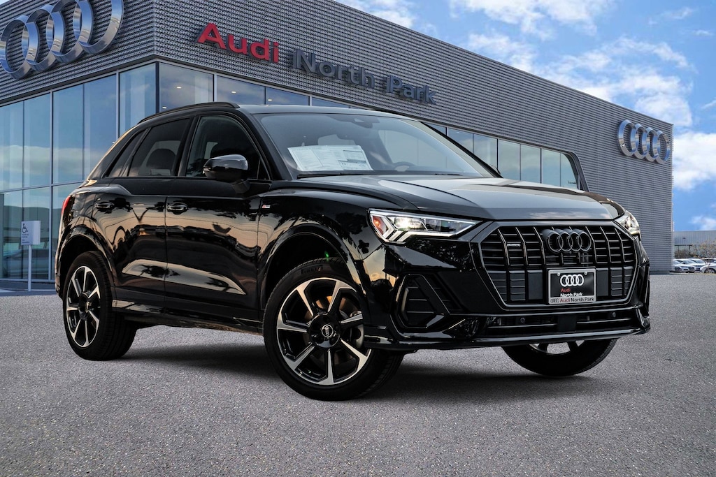 Audi North Park is pleased to offer this good-looking 2025 Audi Q3 Premium Plus. Well equipped with 10 Speakers, 4-Wheel Disc Brakes, ABS brakes, Air Conditioning, Alloy wheels, AM/FM radio, Audi smartphone interface (Apple CarPlay/Android Auto), Auto High-beam Headlights, Automatic temperature control, Brake assist, Bumpers: body-color, Delay-off headlights, Driver door bin, Driver vanity mirror, Dual front impact airbags, Dual front side impact airbags, Electronic Stability Control, Emergency communication system: Audi connect CARE, Exterior Parking Camera Rear, Four wheel independent suspension, Front anti-roll bar, Front Bucket Seats, Front Center Armrest, Front dual zone A/C, Front fog lights, Front reading lights, Fully automatic headlights, Heated door mirrors, Heated Front Bucket Seats, Heated front seats, Illuminated entry, Knee airbag, Leather Seating Surfaces, Leather Shift Knob, Leather steering wheel, Low tire pressure warning, Occupant sensing airbag, Outside temperature display, Overhead airbag, Overhead console, Panic alarm, Passenger door bin, Passenger vanity mirror, Power door mirrors, Power driver seat, Power Liftgate, Power moonroof: Panoramic, Power passenger seat, Power steering, Power windows, Radio data system, Radio: Audi Sound System, Rain sensing wipers, Rear air conditioning, Rear anti-roll bar, Rear fog lights, Rear reading lights, Rear seat center armrest, Rear window defroster, Rear window wiper, Remote keyless entry, Speed control, Speed-sensing steering, Split folding rear seat, Spoiler, Steering wheel mounted audio controls, Tachometer, Telescoping steering wheel, Tilt steering wheel, Traction control, Trip computer, Turn signal indicator mirrors, Variably intermittent wipers, and Wheels: 18 5-V-Spoke-S Design.