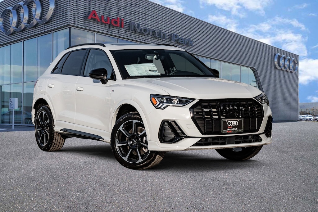Audi North Park is honored to offer this stunning-looking 2025 Audi Q3 Premium Plus. Well equipped with 10 Speakers, 4-Wheel Disc Brakes, ABS brakes, Air Conditioning, Alloy wheels, AM/FM radio, Audi smartphone interface (Apple CarPlay/Android Auto), Auto High-beam Headlights, Automatic temperature control, Brake assist, Bumpers: body-color, Delay-off headlights, Driver door bin, Driver vanity mirror, Dual front impact airbags, Dual front side impact airbags, Electronic Stability Control, Emergency communication system: Audi connect CARE, Exterior Parking Camera Rear, Four wheel independent suspension, Front anti-roll bar, Front Bucket Seats, Front Center Armrest, Front dual zone A/C, Front fog lights, Front reading lights, Fully automatic headlights, Heated door mirrors, Heated Front Bucket Seats, Heated front seats, Illuminated entry, Knee airbag, Leather Seating Surfaces, Leather Shift Knob, Leather steering wheel, Low tire pressure warning, Occupant sensing airbag, Outside temperature display, Overhead airbag, Overhead console, Panic alarm, Passenger door bin, Passenger vanity mirror, Power door mirrors, Power driver seat, Power Liftgate, Power moonroof: Panoramic, Power passenger seat, Power steering, Power windows, Radio data system, Radio: Audi Sound System, Rain sensing wipers, Rear air conditioning, Rear anti-roll bar, Rear fog lights, Rear reading lights, Rear seat center armrest, Rear window defroster, Rear window wiper, Remote keyless entry, Speed control, Speed-sensing steering, Split folding rear seat, Spoiler, Steering wheel mounted audio controls, Tachometer, Telescoping steering wheel, Tilt steering wheel, Traction control, Trip computer, Turn signal indicator mirrors, Variably intermittent wipers, and Wheels: 18 5-V-Spoke-S Design.