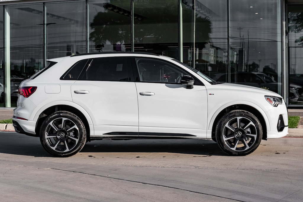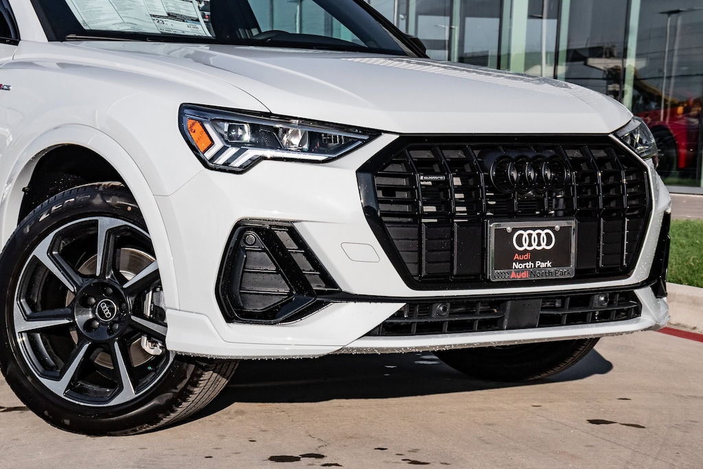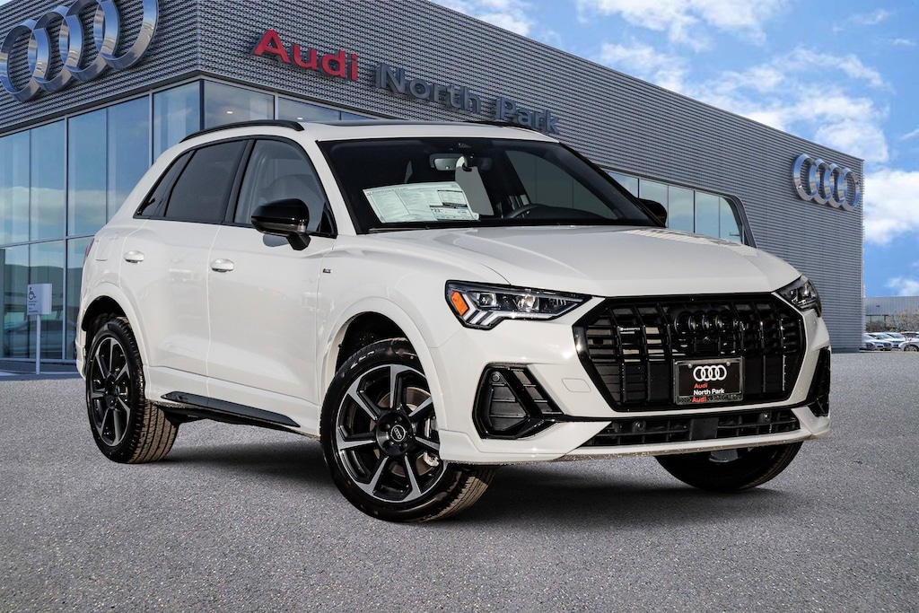 Audi North Park is delighted to offer this superb-looking 2025 Audi Q3 Premium Plus. Well equipped with 10 Speakers, 4-Wheel Disc Brakes, ABS brakes, Air Conditioning, Alloy wheels, AM/FM radio, Audi smartphone interface (Apple CarPlay/Android Auto), Auto High-beam Headlights, Automatic temperature control, Brake assist, Bumpers: body-color, Delay-off headlights, Driver door bin, Driver vanity mirror, Dual front impact airbags, Dual front side impact airbags, Electronic Stability Control, Emergency communication system: Audi connect CARE, Exterior Parking Camera Rear, Four wheel independent suspension, Front anti-roll bar, Front Bucket Seats, Front Center Armrest, Front dual zone A/C, Front fog lights, Front reading lights, Fully automatic headlights, Heated door mirrors, Heated Front Bucket Seats, Heated front seats, Illuminated entry, Knee airbag, Leather Seating Surfaces, Leather Shift Knob, Leather steering wheel, Low tire pressure warning, Occupant sensing airbag, Outside temperature display, Overhead airbag, Overhead console, Panic alarm, Passenger door bin, Passenger vanity mirror, Power door mirrors, Power driver seat, Power Liftgate, Power moonroof: Panoramic, Power passenger seat, Power steering, Power windows, Radio data system, Radio: Audi Sound System, Rain sensing wipers, Rear air conditioning, Rear anti-roll bar, Rear fog lights, Rear reading lights, Rear seat center armrest, Rear window defroster, Rear window wiper, Remote keyless entry, Speed control, Speed-sensing steering, Split folding rear seat, Spoiler, Steering wheel mounted audio controls, Tachometer, Telescoping steering wheel, Tilt steering wheel, Traction control, Trip computer, Turn signal indicator mirrors, Variably intermittent wipers, and Wheels: 18 5-V-Spoke-S Design.