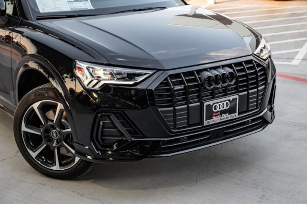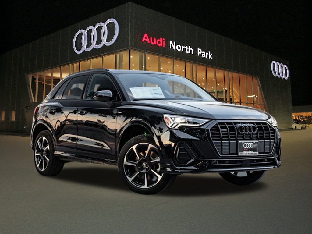 Audi North Park is delighted to offer this charming 2025 Audi Q3 Premium Plus. Well equipped with 10 Speakers, 4-Wheel Disc Brakes, ABS brakes, Air Conditioning, Alloy wheels, AM/FM radio, Audi smartphone interface (Apple CarPlay/Android Auto), Auto High-beam Headlights, Automatic temperature control, Brake assist, Bumpers: body-color, Delay-off headlights, Driver door bin, Driver vanity mirror, Dual front impact airbags, Dual front side impact airbags, Electronic Stability Control, Emergency communication system: Audi connect CARE, Exterior Parking Camera Rear, Four wheel independent suspension, Front anti-roll bar, Front Bucket Seats, Front Center Armrest, Front dual zone A/C, Front fog lights, Front reading lights, Fully automatic headlights, Heated door mirrors, Heated Front Bucket Seats, Heated front seats, Illuminated entry, Knee airbag, Leather Seating Surfaces, Leather Shift Knob, Leather steering wheel, Low tire pressure warning, Occupant sensing airbag, Outside temperature display, Overhead airbag, Overhead console, Panic alarm, Passenger door bin, Passenger vanity mirror, Power door mirrors, Power driver seat, Power Liftgate, Power moonroof: Panoramic, Power passenger seat, Power steering, Power windows, Radio data system, Radio: Audi Sound System, Rain sensing wipers, Rear air conditioning, Rear anti-roll bar, Rear reading lights, Rear seat center armrest, Rear window defroster, Rear window wiper, Remote keyless entry, Speed control, Speed-sensing steering, Split folding rear seat, Spoiler, Steering wheel mounted audio controls, Tachometer, Telescoping steering wheel, Tilt steering wheel, Traction control, Trip computer, Turn signal indicator mirrors, Variably intermittent wipers, and Wheels: 18 5-V-Spoke-S Design.