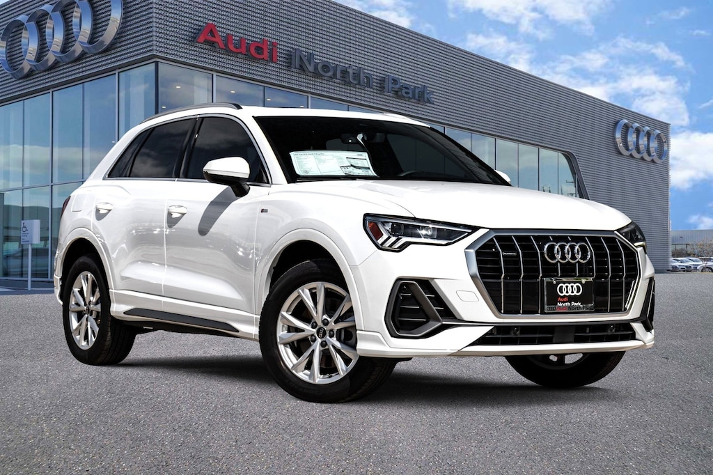 Audi North Park is pleased to offer this beautiful 2025 Audi Q3 Premium. Well equipped with 10 Speakers, 4-Wheel Disc Brakes, ABS brakes, Air Conditioning, Alloy wheels, AM/FM radio, Audi smartphone interface (Apple CarPlay/Android Auto), Auto High-beam Headlights, Automatic temperature control, Brake assist, Bumpers: body-color, Delay-off headlights, Driver door bin, Driver vanity mirror, Dual front impact airbags, Dual front side impact airbags, Electronic Stability Control, Emergency communication system: Audi connect CARE, Exterior Parking Camera Rear, Four wheel independent suspension, Front anti-roll bar, Front Bucket Seats, Front Center Armrest, Front dual zone A/C, Front fog lights, Front reading lights, Fully automatic headlights, Heated door mirrors, Heated Front Bucket Seats, Heated front seats, Illuminated entry, Knee airbag, Leather Seating Surfaces, Leather Shift Knob, Leather steering wheel, Low tire pressure warning, Occupant sensing airbag, Outside temperature display, Overhead airbag, Overhead console, Panic alarm, Passenger door bin, Passenger vanity mirror, Power door mirrors, Power driver seat, Power Liftgate, Power moonroof: Panoramic, Power passenger seat, Power steering, Power windows, Radio data system, Radio: Audi Sound System, Rain sensing wipers, Rear air conditioning, Rear anti-roll bar, Rear fog lights, Rear reading lights, Rear seat center armrest, Rear window defroster, Rear window wiper, Remote keyless entry, Speed control, Speed-sensing steering, Split folding rear seat, Spoiler, Steering wheel mounted audio controls, Tachometer, Telescoping steering wheel, Tilt steering wheel, Traction control, Trip computer, Turn signal indicator mirrors, Variably intermittent wipers, and Wheels: 18 5-V-Spoke-S Design.