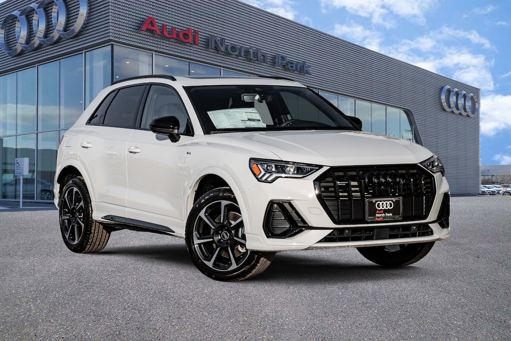 Audi North Park is excited to offer this great-looking 2025 Audi Q3 Premium Plus. Well equipped with 10 Speakers, 4-Wheel Disc Brakes, ABS brakes, Air Conditioning, Alloy wheels, AM/FM radio, Audi smartphone interface (Apple CarPlay/Android Auto), Auto High-beam Headlights, Automatic temperature control, Brake assist, Bumpers: body-color, Delay-off headlights, Driver door bin, Driver vanity mirror, Dual front impact airbags, Dual front side impact airbags, Electronic Stability Control, Emergency communication system: Audi connect CARE, Exterior Parking Camera Rear, Four wheel independent suspension, Front anti-roll bar, Front Bucket Seats, Front Center Armrest, Front dual zone A/C, Front fog lights, Front reading lights, Fully automatic headlights, Heated door mirrors, Heated Front Bucket Seats, Heated front seats, Illuminated entry, Knee airbag, Leather Seating Surfaces, Leather Shift Knob, Leather steering wheel, Low tire pressure warning, Occupant sensing airbag, Outside temperature display, Overhead airbag, Overhead console, Panic alarm, Passenger door bin, Passenger vanity mirror, Power door mirrors, Power driver seat, Power Liftgate, Power moonroof: Panoramic, Power passenger seat, Power steering, Power windows, Radio data system, Radio: Audi Sound System, Rain sensing wipers, Rear air conditioning, Rear anti-roll bar, Rear fog lights, Rear reading lights, Rear seat center armrest, Rear window defroster, Rear window wiper, Remote keyless entry, Speed control, Speed-sensing steering, Split folding rear seat, Spoiler, Steering wheel mounted audio controls, Tachometer, Telescoping steering wheel, Tilt steering wheel, Traction control, Trip computer, Turn signal indicator mirrors, Variably intermittent wipers, and Wheels: 18 5-V-Spoke-S Design.