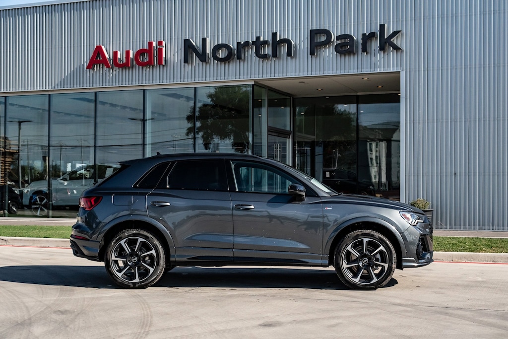 Audi North Park is pumped up to offer this outstanding-looking 2025 Audi Q3 Premium Plus. Well equipped with 10 Speakers, 4-Wheel Disc Brakes, ABS brakes, Air Conditioning, Alloy wheels, AM/FM radio, Audi smartphone interface (Apple CarPlay/Android Auto), Auto High-beam Headlights, Automatic temperature control, Brake assist, Bumpers: body-color, Delay-off headlights, Driver door bin, Driver vanity mirror, Dual front impact airbags, Dual front side impact airbags, Electronic Stability Control, Emergency communication system: Audi connect CARE, Exterior Parking Camera Rear, Four wheel independent suspension, Front anti-roll bar, Front Bucket Seats, Front Center Armrest, Front dual zone A/C, Front fog lights, Front reading lights, Fully automatic headlights, Heated door mirrors, Heated Front Bucket Seats, Heated front seats, Illuminated entry, Knee airbag, Leather Seating Surfaces, Leather Shift Knob, Leather steering wheel, Low tire pressure warning, Occupant sensing airbag, Outside temperature display, Overhead airbag, Overhead console, Panic alarm, Passenger door bin, Passenger vanity mirror, Power door mirrors, Power driver seat, Power Liftgate, Power moonroof: Panoramic, Power passenger seat, Power steering, Power windows, Radio data system, Radio: Audi Sound System, Rain sensing wipers, Rear air conditioning, Rear anti-roll bar, Rear fog lights, Rear reading lights, Rear seat center armrest, Rear window defroster, Rear window wiper, Remote keyless entry, Speed control, Speed-sensing steering, Split folding rear seat, Spoiler, Steering wheel mounted audio controls, Tachometer, Telescoping steering wheel, Tilt steering wheel, Traction control, Trip computer, Turn signal indicator mirrors, Variably intermittent wipers, and Wheels: 18 5-V-Spoke-S Design.