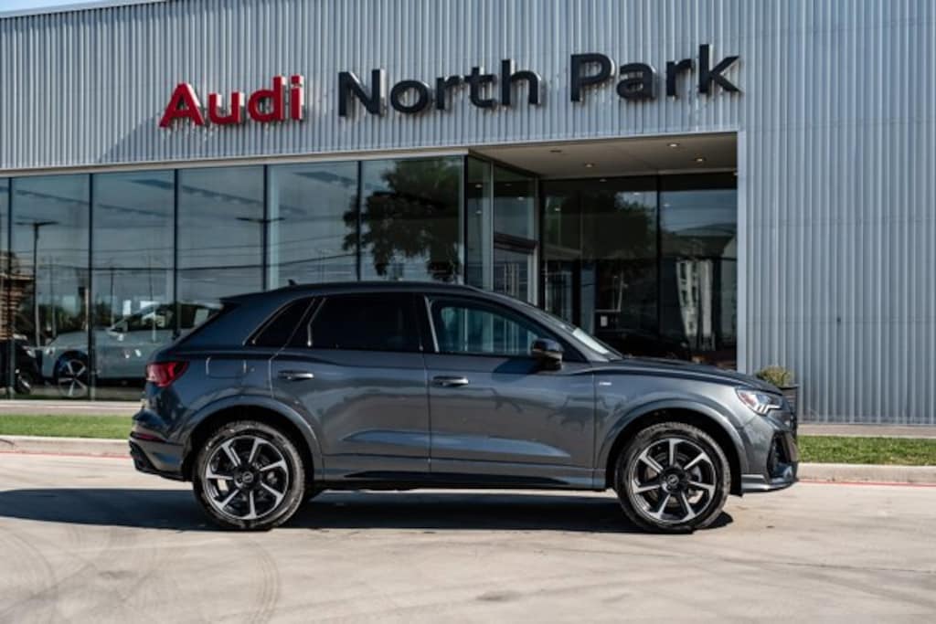 Audi North Park is honored to offer this attractive-looking 2025 Audi Q3 Premium Plus. Well equipped with 10 Speakers, 4-Wheel Disc Brakes, ABS brakes, Air Conditioning, Alloy wheels, AM/FM radio, Audi smartphone interface (Apple CarPlay/Android Auto), Auto High-beam Headlights, Automatic temperature control, Brake assist, Bumpers: body-color, Delay-off headlights, Driver door bin, Driver vanity mirror, Dual front impact airbags, Dual front side impact airbags, Electronic Stability Control, Emergency communication system: Audi connect CARE, Exterior Parking Camera Rear, Four wheel independent suspension, Front anti-roll bar, Front Bucket Seats, Front Center Armrest, Front dual zone A/C, Front fog lights, Front reading lights, Fully automatic headlights, Heated door mirrors, Heated Front Bucket Seats, Heated front seats, Illuminated entry, Knee airbag, Leather Seating Surfaces, Leather Shift Knob, Leather steering wheel, Low tire pressure warning, Occupant sensing airbag, Outside temperature display, Overhead airbag, Overhead console, Panic alarm, Passenger door bin, Passenger vanity mirror, Power door mirrors, Power driver seat, Power Liftgate, Power moonroof: Panoramic, Power passenger seat, Power steering, Power windows, Radio data system, Radio: Audi Sound System, Rain sensing wipers, Rear air conditioning, Rear anti-roll bar, Rear reading lights, Rear seat center armrest, Rear window defroster, Rear window wiper, Remote keyless entry, Speed control, Speed-sensing steering, Split folding rear seat, Spoiler, Steering wheel mounted audio controls, Tachometer, Telescoping steering wheel, Tilt steering wheel, Traction control, Trip computer, Turn signal indicator mirrors, Variably intermittent wipers, and Wheels: 18 5-V-Spoke-S Design.