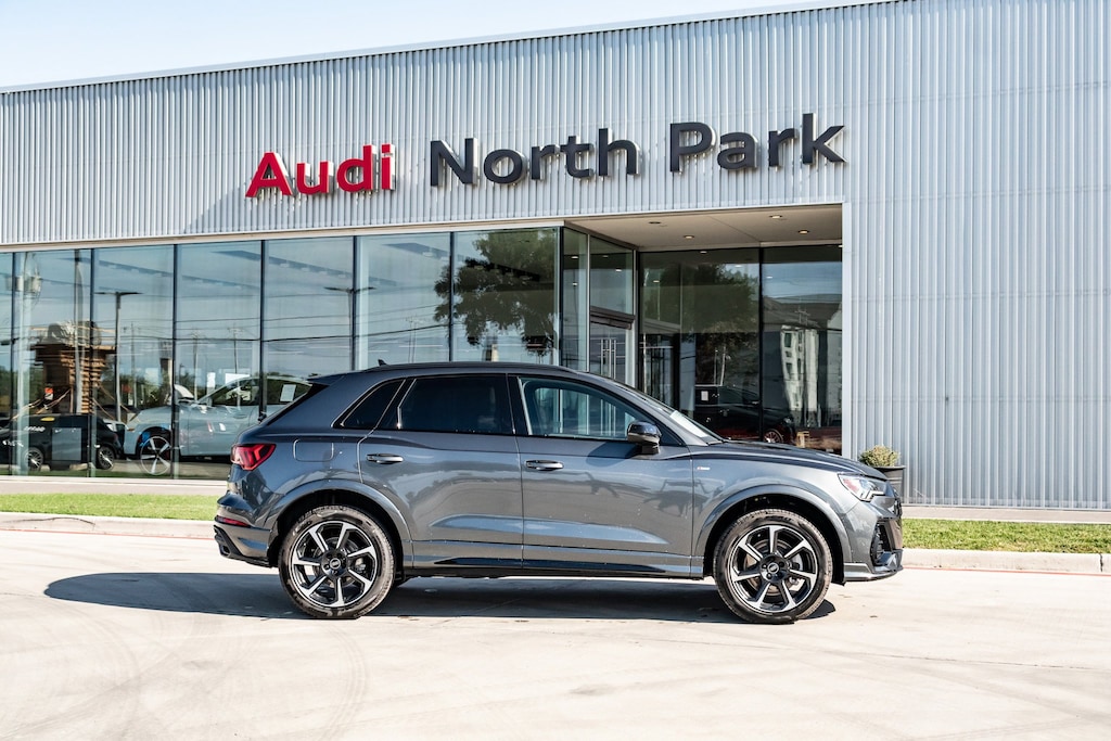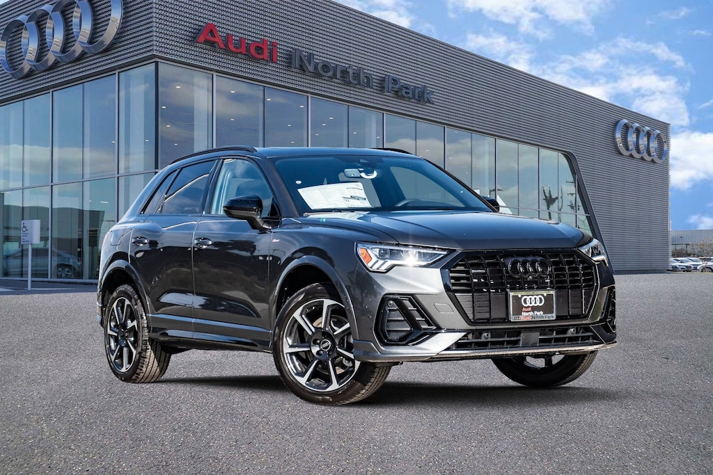 Audi North Park is very proud to offer this outstanding 2025 Audi Q3 Premium Plus. Well equipped with 10 Speakers, 4-Wheel Disc Brakes, ABS brakes, Air Conditioning, Alloy wheels, AM/FM radio, Audi smartphone interface (Apple CarPlay/Android Auto), Auto High-beam Headlights, Automatic temperature control, Brake assist, Bumpers: body-color, Delay-off headlights, Driver door bin, Driver vanity mirror, Dual front impact airbags, Dual front side impact airbags, Electronic Stability Control, Emergency communication system: Audi connect CARE, Exterior Parking Camera Rear, Four wheel independent suspension, Front anti-roll bar, Front Bucket Seats, Front Center Armrest, Front dual zone A/C, Front fog lights, Front reading lights, Fully automatic headlights, Heated door mirrors, Heated Front Bucket Seats, Heated front seats, Illuminated entry, Knee airbag, Leather Seating Surfaces, Leather Shift Knob, Leather steering wheel, Low tire pressure warning, Occupant sensing airbag, Outside temperature display, Overhead airbag, Overhead console, Panic alarm, Passenger door bin, Passenger vanity mirror, Power door mirrors, Power driver seat, Power Liftgate, Power moonroof: Panoramic, Power passenger seat, Power steering, Power windows, Radio data system, Radio: Audi Sound System, Rain sensing wipers, Rear air conditioning, Rear anti-roll bar, Rear fog lights, Rear reading lights, Rear seat center armrest, Rear window defroster, Rear window wiper, Remote keyless entry, Speed control, Speed-sensing steering, Split folding rear seat, Spoiler, Steering wheel mounted audio controls, Tachometer, Telescoping steering wheel, Tilt steering wheel, Traction control, Trip computer, Turn signal indicator mirrors, Variably intermittent wipers, and Wheels: 18 5-V-Spoke-S Design.