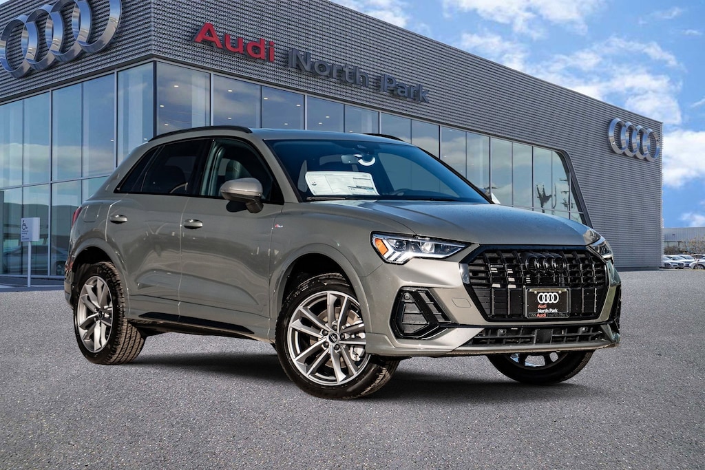 Audi North Park is pleased to offer this attractive-looking 2025 Audi Q3 Premium. Well equipped with 10 Speakers, 4-Wheel Disc Brakes, ABS brakes, Air Conditioning, Alloy wheels, AM/FM radio, Audi smartphone interface (Apple CarPlay/Android Auto), Auto High-beam Headlights, Automatic temperature control, Brake assist, Bumpers: body-color, Delay-off headlights, Driver door bin, Driver vanity mirror, Dual front impact airbags, Dual front side impact airbags, Electronic Stability Control, Emergency communication system: Audi connect CARE, Exterior Parking Camera Rear, Four wheel independent suspension, Front anti-roll bar, Front Bucket Seats, Front Center Armrest, Front dual zone A/C, Front fog lights, Front reading lights, Fully automatic headlights, Heated door mirrors, Heated Front Bucket Seats, Heated front seats, Illuminated entry, Knee airbag, Leather Seating Surfaces, Leather Shift Knob, Leather steering wheel, Low tire pressure warning, Occupant sensing airbag, Outside temperature display, Overhead airbag, Overhead console, Panic alarm, Passenger door bin, Passenger vanity mirror, Power door mirrors, Power driver seat, Power Liftgate, Power moonroof: Panoramic, Power passenger seat, Power steering, Power windows, Radio data system, Radio: Audi Sound System, Rain sensing wipers, Rear air conditioning, Rear anti-roll bar, Rear fog lights, Rear reading lights, Rear seat center armrest, Rear window defroster, Rear window wiper, Remote keyless entry, Speed control, Speed-sensing steering, Split folding rear seat, Spoiler, Steering wheel mounted audio controls, Tachometer, Telescoping steering wheel, Tilt steering wheel, Traction control, Trip computer, Turn signal indicator mirrors, Variably intermittent wipers, and Wheels: 18 5-V-Spoke-S Design.