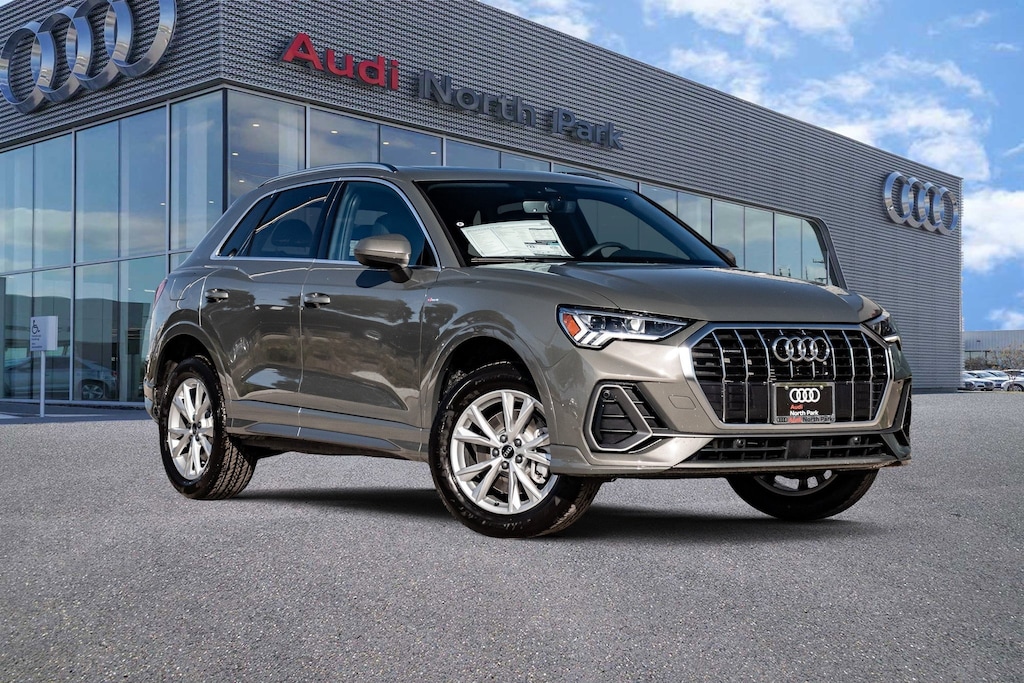 Audi North Park is pleased to offer this wonderful-looking 2025 Audi Q3 Premium. Well equipped with 10 Speakers, 4-Wheel Disc Brakes, ABS brakes, Air Conditioning, Alloy wheels, AM/FM radio, Audi smartphone interface (Apple CarPlay/Android Auto), Auto High-beam Headlights, Automatic temperature control, Brake assist, Bumpers: body-color, Delay-off headlights, Driver door bin, Driver vanity mirror, Dual front impact airbags, Dual front side impact airbags, Electronic Stability Control, Emergency communication system: Audi connect CARE, Exterior Parking Camera Rear, Four wheel independent suspension, Front anti-roll bar, Front Bucket Seats, Front Center Armrest, Front dual zone A/C, Front fog lights, Front reading lights, Fully automatic headlights, Heated door mirrors, Heated Front Bucket Seats, Heated front seats, Illuminated entry, Knee airbag, Leather Seating Surfaces, Leather Shift Knob, Leather steering wheel, Low tire pressure warning, Occupant sensing airbag, Outside temperature display, Overhead airbag, Overhead console, Panic alarm, Passenger door bin, Passenger vanity mirror, Power door mirrors, Power driver seat, Power Liftgate, Power moonroof: Panoramic, Power passenger seat, Power steering, Power windows, Radio data system, Radio: Audi Sound System, Rain sensing wipers, Rear air conditioning, Rear anti-roll bar, Rear fog lights, Rear reading lights, Rear seat center armrest, Rear window defroster, Rear window wiper, Remote keyless entry, Speed control, Speed-sensing steering, Split folding rear seat, Spoiler, Steering wheel mounted audio controls, Tachometer, Telescoping steering wheel, Tilt steering wheel, Traction control, Trip computer, Turn signal indicator mirrors, Variably intermittent wipers, and Wheels: 18 5-V-Spoke-S Design.
