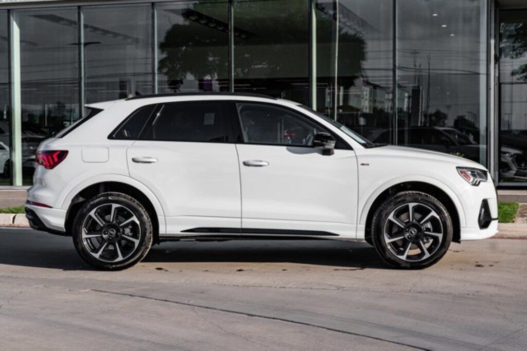 Audi North Park is pumped up to offer this outstanding-looking 2025 Audi Q3 Premium Plus. Well equipped with 10 Speakers, 4-Wheel Disc Brakes, ABS brakes, Air Conditioning, Alloy wheels, AM/FM radio, Audi smartphone interface (Apple CarPlay/Android Auto), Auto High-beam Headlights, Automatic temperature control, Brake assist, Bumpers: body-color, Delay-off headlights, Driver door bin, Driver vanity mirror, Dual front impact airbags, Dual front side impact airbags, Electronic Stability Control, Emergency communication system: Audi connect CARE, Exterior Parking Camera Rear, Four wheel independent suspension, Front anti-roll bar, Front Bucket Seats, Front Center Armrest, Front dual zone A/C, Front fog lights, Front reading lights, Fully automatic headlights, Heated door mirrors, Heated Front Bucket Seats, Heated front seats, Illuminated entry, Knee airbag, Leather Seating Surfaces, Leather Shift Knob, Leather steering wheel, Low tire pressure warning, Occupant sensing airbag, Outside temperature display, Overhead airbag, Overhead console, Panic alarm, Passenger door bin, Passenger vanity mirror, Power door mirrors, Power driver seat, Power Liftgate, Power moonroof: Panoramic, Power passenger seat, Power steering, Power windows, Radio data system, Radio: Audi Sound System, Rain sensing wipers, Rear air conditioning, Rear anti-roll bar, Rear reading lights, Rear seat center armrest, Rear window defroster, Rear window wiper, Remote keyless entry, Speed control, Speed-sensing steering, Split folding rear seat, Spoiler, Steering wheel mounted audio controls, Tachometer, Telescoping steering wheel, Tilt steering wheel, Traction control, Trip computer, Turn signal indicator mirrors, Variably intermittent wipers, and Wheels: 18 5-V-Spoke-S Design.