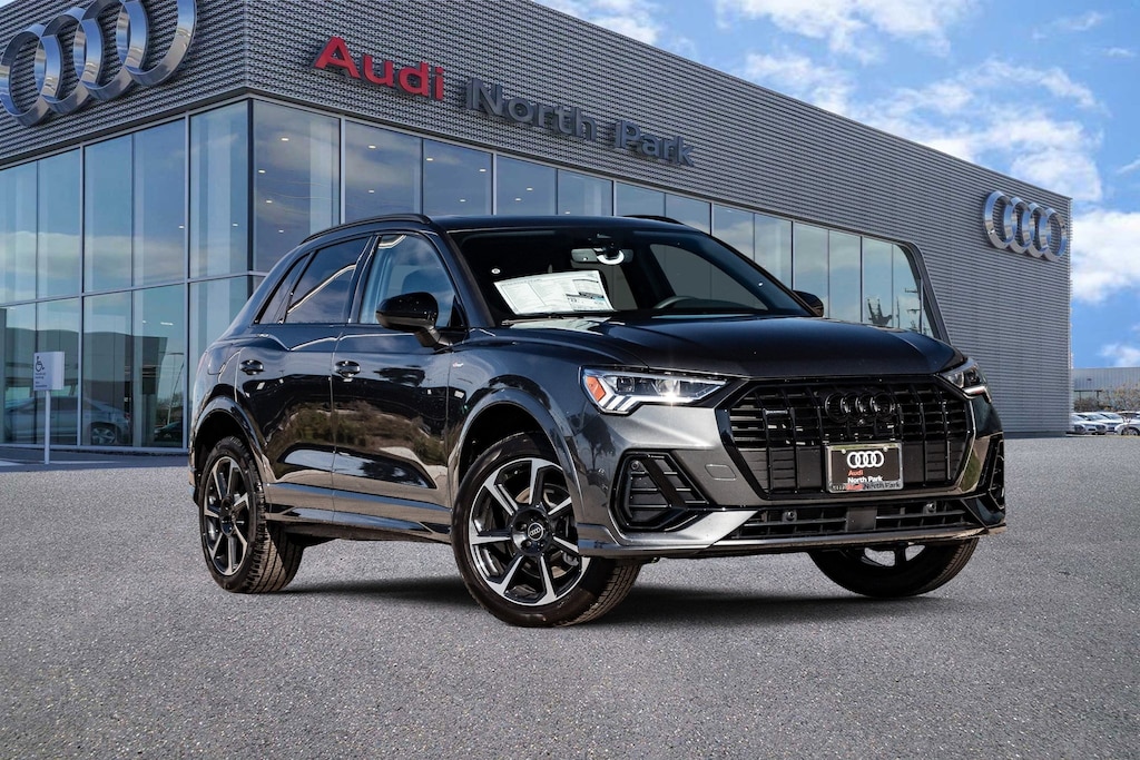 Audi North Park is delighted to offer this stunning 2025 Audi Q3 Premium Plus. Well equipped with 10 Speakers, 4-Wheel Disc Brakes, ABS brakes, Air Conditioning, Alloy wheels, AM/FM radio, Audi smartphone interface (Apple CarPlay/Android Auto), Auto High-beam Headlights, Automatic temperature control, Brake assist, Bumpers: body-color, Delay-off headlights, Driver door bin, Driver vanity mirror, Dual front impact airbags, Dual front side impact airbags, Electronic Stability Control, Emergency communication system: Audi connect CARE, Exterior Parking Camera Rear, Four wheel independent suspension, Front anti-roll bar, Front Bucket Seats, Front Center Armrest, Front dual zone A/C, Front fog lights, Front reading lights, Fully automatic headlights, Heated door mirrors, Heated Front Bucket Seats, Heated front seats, Illuminated entry, Knee airbag, Leather Seating Surfaces, Leather Shift Knob, Leather steering wheel, Low tire pressure warning, Occupant sensing airbag, Outside temperature display, Overhead airbag, Overhead console, Panic alarm, Passenger door bin, Passenger vanity mirror, Power door mirrors, Power driver seat, Power Liftgate, Power moonroof: Panoramic, Power passenger seat, Power steering, Power windows, Radio data system, Radio: Audi Sound System, Rain sensing wipers, Rear air conditioning, Rear anti-roll bar, Rear fog lights, Rear reading lights, Rear seat center armrest, Rear window defroster, Rear window wiper, Remote keyless entry, Speed control, Speed-sensing steering, Split folding rear seat, Spoiler, Steering wheel mounted audio controls, Tachometer, Telescoping steering wheel, Tilt steering wheel, Traction control, Trip computer, Turn signal indicator mirrors, Variably intermittent wipers, and Wheels: 18 5-V-Spoke-S Design.