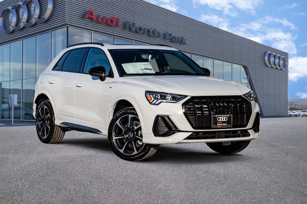 Audi North Park is proud to offer this wonderful 2025 Audi Q3 Premium Plus. Well equipped with 10 Speakers, 4-Wheel Disc Brakes, ABS brakes, Air Conditioning, Alloy wheels, AM/FM radio, Audi smartphone interface (Apple CarPlay/Android Auto), Auto High-beam Headlights, Automatic temperature control, Brake assist, Bumpers: body-color, Delay-off headlights, Driver door bin, Driver vanity mirror, Dual front impact airbags, Dual front side impact airbags, Electronic Stability Control, Emergency communication system: Audi connect CARE, Exterior Parking Camera Rear, Four wheel independent suspension, Front anti-roll bar, Front Bucket Seats, Front Center Armrest, Front dual zone A/C, Front fog lights, Front reading lights, Fully automatic headlights, Heated door mirrors, Heated Front Bucket Seats, Heated front seats, Illuminated entry, Knee airbag, Leather Seating Surfaces, Leather Shift Knob, Leather steering wheel, Low tire pressure warning, Occupant sensing airbag, Outside temperature display, Overhead airbag, Overhead console, Panic alarm, Passenger door bin, Passenger vanity mirror, Power door mirrors, Power driver seat, Power Liftgate, Power moonroof: Panoramic, Power passenger seat, Power steering, Power windows, Radio data system, Radio: Audi Sound System, Rain sensing wipers, Rear air conditioning, Rear anti-roll bar, Rear fog lights, Rear reading lights, Rear seat center armrest, Rear window defroster, Rear window wiper, Remote keyless entry, Speed control, Speed-sensing steering, Split folding rear seat, Spoiler, Steering wheel mounted audio controls, Tachometer, Telescoping steering wheel, Tilt steering wheel, Traction control, Trip computer, Turn signal indicator mirrors, Variably intermittent wipers, and Wheels: 18 5-V-Spoke-S Design.