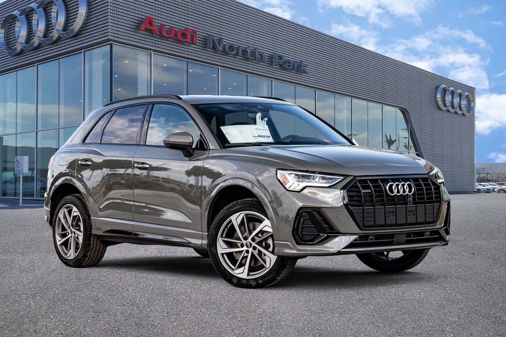Audi North Park is excited to offer this gorgeous 2025 Audi Q3 Premium. Well equipped with 10 Speakers, 4-Wheel Disc Brakes, ABS brakes, Air Conditioning, Alloy wheels, AM/FM radio, Audi smartphone interface (Apple CarPlay/Android Auto), Auto High-beam Headlights, Automatic temperature control, Brake assist, Bumpers: body-color, Delay-off headlights, Driver door bin, Driver vanity mirror, Dual front impact airbags, Dual front side impact airbags, Electronic Stability Control, Emergency communication system: Audi connect CARE, Exterior Parking Camera Rear, Four wheel independent suspension, Front anti-roll bar, Front Bucket Seats, Front Center Armrest, Front dual zone A/C, Front fog lights, Front reading lights, Fully automatic headlights, Heated door mirrors, Heated Front Bucket Seats, Heated front seats, Illuminated entry, Knee airbag, Leather Seating Surfaces, Leather Shift Knob, Leather steering wheel, Low tire pressure warning, Occupant sensing airbag, Outside temperature display, Overhead airbag, Overhead console, Panic alarm, Passenger door bin, Passenger vanity mirror, Power door mirrors, Power driver seat, Power Liftgate, Power moonroof: Panoramic, Power passenger seat, Power steering, Power windows, Radio data system, Radio: Audi Sound System, Rain sensing wipers, Rear air conditioning, Rear anti-roll bar, Rear fog lights, Rear reading lights, Rear seat center armrest, Rear window defroster, Rear window wiper, Remote keyless entry, Speed control, Speed-sensing steering, Split folding rear seat, Spoiler, Steering wheel mounted audio controls, Tachometer, Telescoping steering wheel, Tilt steering wheel, Traction control, Trip computer, Turn signal indicator mirrors, Variably intermittent wipers, and Wheels: 18 5-V-Spoke-S Design.