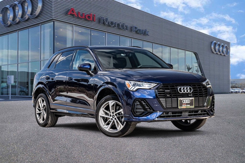 Audi North Park is pleased to offer this terrific 2025 Audi Q3 Premium. Well equipped with 10 Speakers, 4-Wheel Disc Brakes, ABS brakes, Air Conditioning, Alloy wheels, AM/FM radio, Audi smartphone interface (Apple CarPlay/Android Auto), Auto High-beam Headlights, Automatic temperature control, Brake assist, Bumpers: body-color, Delay-off headlights, Driver door bin, Driver vanity mirror, Dual front impact airbags, Dual front side impact airbags, Electronic Stability Control, Emergency communication system: Audi connect CARE, Exterior Parking Camera Rear, Four wheel independent suspension, Front anti-roll bar, Front Bucket Seats, Front Center Armrest, Front dual zone A/C, Front fog lights, Front reading lights, Fully automatic headlights, Heated door mirrors, Heated Front Bucket Seats, Heated front seats, Illuminated entry, Knee airbag, Leather Seating Surfaces, Leather Shift Knob, Leather steering wheel, Low tire pressure warning, Occupant sensing airbag, Outside temperature display, Overhead airbag, Overhead console, Panic alarm, Passenger door bin, Passenger vanity mirror, Power door mirrors, Power driver seat, Power Liftgate, Power moonroof: Panoramic, Power passenger seat, Power steering, Power windows, Radio data system, Radio: Audi Sound System, Rain sensing wipers, Rear air conditioning, Rear anti-roll bar, Rear fog lights, Rear reading lights, Rear seat center armrest, Rear window defroster, Rear window wiper, Remote keyless entry, Speed control, Speed-sensing steering, Split folding rear seat, Spoiler, Steering wheel mounted audio controls, Tachometer, Telescoping steering wheel, Tilt steering wheel, Traction control, Trip computer, Turn signal indicator mirrors, Variably intermittent wipers, and Wheels: 18 5-V-Spoke-S Design.