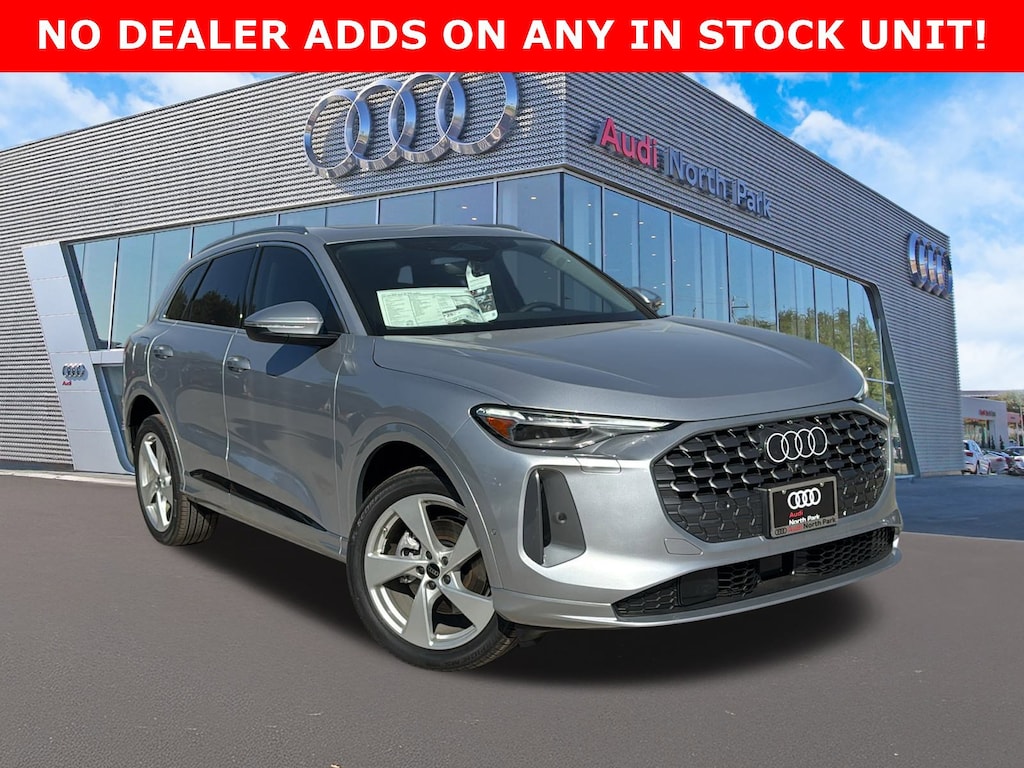 Audi North Park is pumped up to offer this superb 2025 Audi Q5 2.0T Premium Plus. Well equipped with Leather, 10 Speakers, 4-Wheel Disc Brakes, ABS brakes, Air Conditioning, Alloy wheels, AM/FM radio: SiriusXM w/360L, Auto High-beam Headlights, Auto tilt-away steering wheel, Auto-dimming door mirrors, Auto-dimming Rear-View mirror, Automatic temperature control, Brake assist, Bumpers: body-color, Compass, Delay-off headlights, Driver door bin, Driver vanity mirror, Dual front impact airbags, Dual front side impact airbags, Electronic Stability Control, Emergency communication system: Audi connect CARE, Exterior Parking Camera Rear, Four wheel independent suspension, Front anti-roll bar, Front Bucket Seats, Front Center Armrest, Front dual zone A/C, Front fog lights, Front reading lights, Garage door transmitter: HomeLink, Genuine wood console insert, Genuine wood dashboard insert, Genuine wood door panel insert, Heated door mirrors, Heated Front Bucket Seats, Heated front seats, Illuminated entry, Leather Seating Surfaces, Leather steering wheel, Low tire pressure warning, Memory seat, Navigation system: Audi Navigation Plus, Occupant sensing airbag, Outside temperature display, Overhead airbag, Overhead console, Panic alarm, Passenger door bin, Passenger vanity mirror, Power door mirrors, Power driver seat, Power Liftgate, Power passenger seat, Power steering, Power windows, Radio data system, Radio: MMI Navigation Plus, Rain sensing wipers, Rear air conditioning, Rear anti-roll bar, Rear fog lights, Rear reading lights, Rear seat center armrest, Rear window defroster, Rear window wiper, Remote keyless entry, Roof rack, Security system, Speed control, Speed-sensing steering, Speed-Sensitive Wipers, Split folding rear seat, Spoiler, Steering wheel mounted audio controls, Tachometer, Telescoping steering wheel, Tilt steering wheel, Traction control, Trip computer, Turn signal indicator mirrors, Variably intermittent wipers, and Wheels: 18 5-Arm-Twist Design.