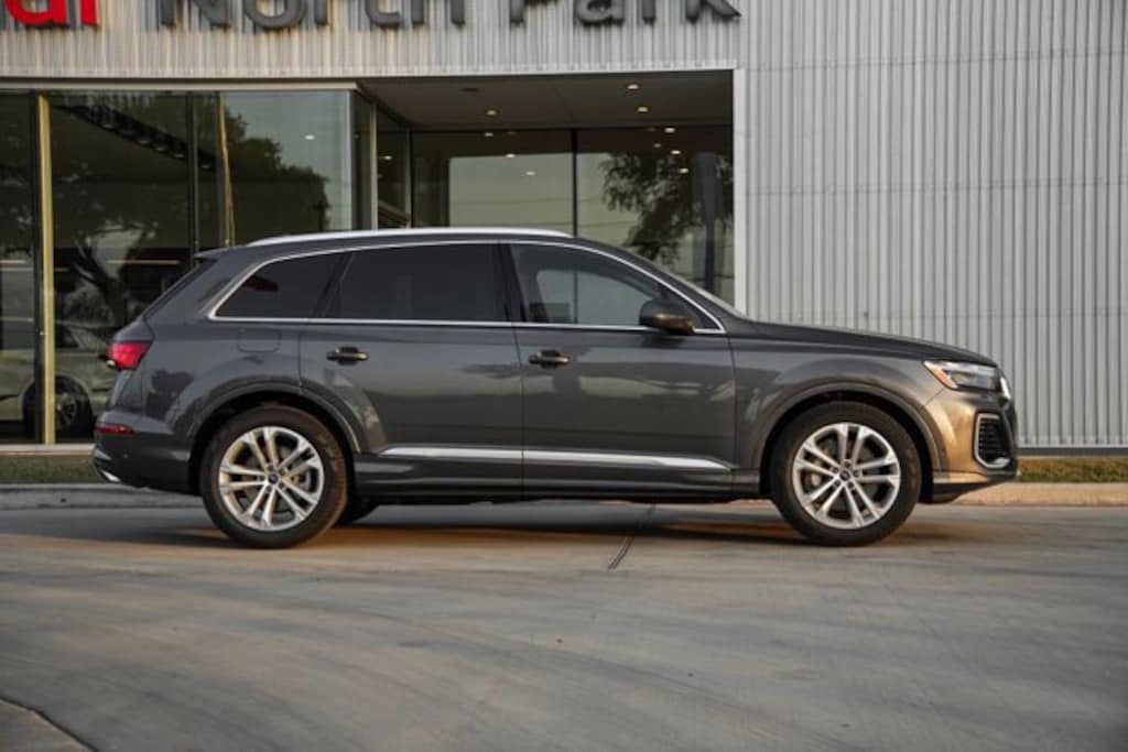 Audi North Park is pleased to offer this handsome 2025 Audi Q7 55 Prestige. Well equipped with 10 Speakers, 3rd row seats: bench, 4-Wheel Disc Brakes, ABS brakes, Air Conditioning, Alloy wheels, AM/FM radio: SiriusXM w/360L, Auto High-beam Headlights, Auto-dimming door mirrors, Auto-dimming Rear-View mirror, Automatic temperature control, Brake assist, Bumpers: body-color, Compass, Delay-off headlights, Driver door bin, Driver vanity mirror, Dual front impact airbags, Dual front side impact airbags, Electronic Stability Control, Emergency communication system: Audi connect CARE, Exterior Parking Camera Rear, Four wheel independent suspension, Front anti-roll bar, Front Bucket Seats, Front Center Armrest, Front dual zone A/C, Front fog lights, Front reading lights, Fully automatic headlights, Garage door transmitter: HomeLink, Genuine wood door panel insert, Heated door mirrors, Heated Front Bucket Seats, Heated front seats, Illuminated entry, Leather Seating Surfaces, Leather Shift Knob, Leather steering wheel, Low tire pressure warning, Memory seat, Navigation system: Audi MMI Navigation plus with Touch Response, Occupant sensing airbag, Outside temperature display, Overhead airbag, Overhead console, Panic alarm, Passenger door bin, Passenger vanity mirror, Power door mirrors, Power driver seat, Power Liftgate, Power moonroof: Panoramic, Power passenger seat, Power steering, Power windows, Radio data system, Radio: Audi Sound System, Rain sensing wipers, Rear air conditioning, Rear anti-roll bar, Rear fog lights, Rear reading lights, Rear seat center armrest, Rear side impact airbag, Rear window defroster, Rear window wiper, Reclining 3rd row seat, Remote keyless entry, Security system, Speed control, Speed-sensing steering, Split folding rear seat, Spoiler, Steering wheel memory, Steering wheel mounted audio controls, Tachometer, Telescoping steering wheel, Tilt steering wheel, Traction control, Trip computer, Turn signal indicator mirrors, Variably intermittent wipers, and Wheels: 19 5-Arm-Star Design.