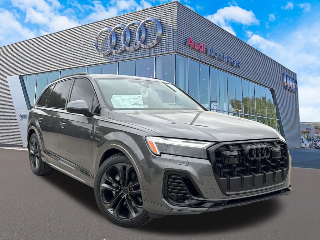 Audi North Park is proud to offer this wonderful 2026 Audi Q7 55 Premium Plus. Well equipped with 10 Speakers, 3rd row seats: bench, 4-Wheel Disc Brakes, ABS brakes, Air Conditioning, Alloy wheels, AM/FM radio, Auto High-beam Headlights, Auto-dimming door mirrors, Auto-dimming Rear-View mirror, Automatic temperature control, Brake assist, Bumpers: body-color, Compass, Delay-off headlights, Driver door bin, Driver vanity mirror, Dual front impact airbags, Dual front side impact airbags, Electronic Stability Control, Emergency communication system: Audi connect CARE, Exterior Parking Camera Rear, Four wheel independent suspension, Front anti-roll bar, Front Bucket Seats, Front Center Armrest, Front dual zone A/C, Front fog lights, Front reading lights, Fully automatic headlights, Garage door transmitter: HomeLink, Genuine wood door panel insert, Heated door mirrors, Heated Front Bucket Seats, Heated front seats, Illuminated entry, Leather Seating Surfaces, Leather Shift Knob, Leather steering wheel, Low tire pressure warning, Memory seat, Navigation system: Audi MMI Navigation plus with Touch Response, Occupant sensing airbag, Outside temperature display, Overhead airbag, Overhead console, Panic alarm, Passenger door bin, Passenger vanity mirror, Power door mirrors, Power driver seat, Power Liftgate, Power moonroof: Panoramic, Power passenger seat, Power steering, Power windows, Radio data system, Radio: Audi Sound System, Rain sensing wipers, Rear air conditioning, Rear anti-roll bar, Rear fog lights, Rear reading lights, Rear seat center armrest, Rear side impact airbag, Rear window defroster, Rear window wiper, Reclining 3rd row seat, Remote keyless entry, Security system, Speed control, Speed-sensing steering, Split folding rear seat, Spoiler, Steering wheel memory, Steering wheel mounted audio controls, Tachometer, Telescoping steering wheel, Tilt steering wheel, Traction control, Trip computer, Turn signal indicator mirrors, Variably intermittent wipers, and Wheels: 19 5-Arm-Star Design.