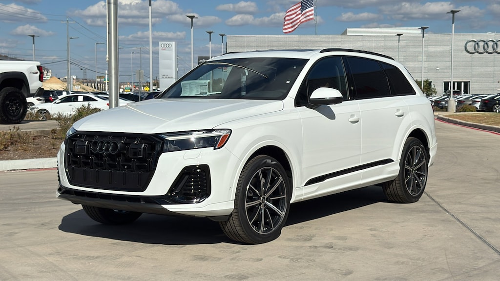 Audi North Park is pumped up to offer this superb-looking 2026 Audi Q7 45 Premium Plus. Well equipped with 10 Speakers, 3rd row seats: bench, 4-Wheel Disc Brakes, ABS brakes, Air Conditioning, Alloy wheels, AM/FM radio, Auto High-beam Headlights, Auto-dimming door mirrors, Auto-dimming Rear-View mirror, Automatic temperature control, Brake assist, Bumpers: body-color, Compass, Delay-off headlights, Driver door bin, Driver vanity mirror, Dual front impact airbags, Dual front side impact airbags, Electronic Stability Control, Emergency communication system: Audi connect CARE, Exterior Parking Camera Rear, Four wheel independent suspension, Front anti-roll bar, Front Bucket Seats, Front Center Armrest, Front dual zone A/C, Front fog lights, Front reading lights, Fully automatic headlights, Garage door transmitter: HomeLink, Genuine wood door panel insert, Heated door mirrors, Heated Front Bucket Seats, Heated front seats, Illuminated entry, Leather Seating Surfaces, Leather Shift Knob, Leather steering wheel, Low tire pressure warning, Memory seat, Navigation system: Audi MMI Navigation plus with Touch Response, Occupant sensing airbag, Outside temperature display, Overhead airbag, Overhead console, Panic alarm, Passenger door bin, Passenger vanity mirror, Power door mirrors, Power driver seat, Power Liftgate, Power moonroof: Panoramic, Power passenger seat, Power steering, Power windows, Radio data system, Radio: Audi Sound System, Rain sensing wipers, Rear air conditioning, Rear anti-roll bar, Rear fog lights, Rear reading lights, Rear seat center armrest, Rear side impact airbag, Rear window defroster, Rear window wiper, Reclining 3rd row seat, Remote keyless entry, Security system, Speed control, Speed-sensing steering, Split folding rear seat, Spoiler, Steering wheel memory, Steering wheel mounted audio controls, Tachometer, Telescoping steering wheel, Tilt steering wheel, Traction control, Trip computer, Turn signal indicator mirrors, Variably intermittent wipers, and Wheels: 19 5-Arm-Star Design.