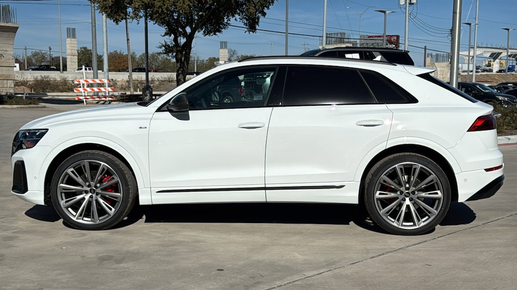 Audi North Park is excited to offer this stunning-looking 2026 Audi Q8 . Well equipped with 10 Speakers, 4-Wheel Disc Brakes, ABS brakes, Adaptive suspension, Air Conditioning, Alloy wheels, AM/FM radio, Audi Sound System, Auto High-beam Headlights, Auto-dimming door mirrors, Auto-dimming Rear-View mirror, Automatic temperature control, Brake assist, Bumpers: body-color, Compass, Delay-off headlights, Driver door bin, Driver vanity mirror, Dual front impact airbags, Dual front side impact airbags, Electronic Stability Control, Emergency communication system: Audi connect CARE, Exterior Parking Camera Rear, Four wheel independent suspension, Front anti-roll bar, Front Bucket Seats, Front Center Armrest, Front dual zone A/C, Front fog lights, Front reading lights, Fully automatic headlights, Garage door transmitter: HomeLink, Genuine wood door panel insert, Heated door mirrors, Heated Front Bucket Seats, Heated front seats, Illuminated entry, Leather Seating Surfaces, Leather Shift Knob, Leather steering wheel, Low tire pressure warning, Memory seat, Navigation system: Audi MMI Navigation plus with Touch Response, Occupant sensing airbag, Outside temperature display, Overhead airbag, Overhead console, Panic alarm, Passenger door bin, Passenger vanity mirror, Power door mirrors, Power driver seat, Power Liftgate, Power moonroof: Panoramic, Power passenger seat, Power steering, Power windows, Radio data system, Radio: Audi MMI Navigation Plus with MMI Touch Response, Rain sensing wipers, Rear air conditioning, Rear anti-roll bar, Rear fog lights, Rear reading lights, Rear seat center armrest, Rear side impact airbag, Rear window defroster, Rear window wiper, Remote keyless entry, Security system, Speed control, Speed-sensing steering, Split folding rear seat, Spoiler, Steering wheel memory, Steering wheel mounted audio controls, Tachometer, Telescoping steering wheel, Tilt steering wheel, Traction control, Trip computer, Turn signal indicator mirrors, Variably intermittent wipers, and Wheels: 21 5-W-Spoke Design with Bicolor Finish.