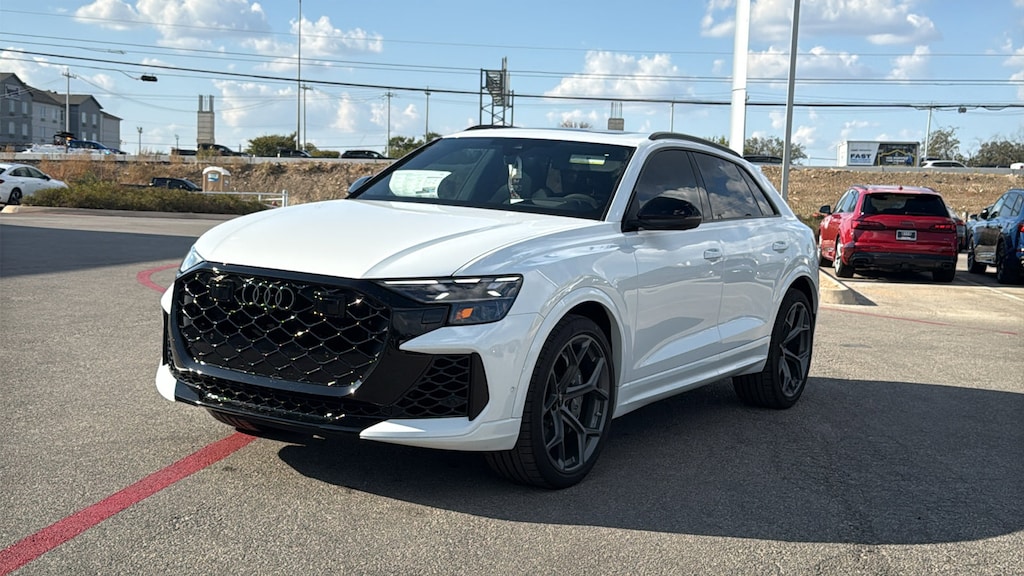 Audi North Park is proud to offer this gorgeous-looking 2026 Audi RS Q8 performance 4.0T. Well equipped with 17 Speakers, 4-Wheel Disc Brakes, ABS brakes, Adaptive suspension, Air Conditioning, Alloy wheels, AM/FM radio, Auto High-beam Headlights, Auto-dimming door mirrors, Auto-dimming Rear-View mirror, Auto-leveling suspension, Automatic temperature control, Bang & Olufsen Premium Sound System with 3D Sound, Brake assist, Bumpers: body-color, Ceramic disc brakes: front and rear, Compass, Delay-off headlights, Driver door bin, Driver vanity mirror, Dual front impact airbags, Dual front side impact airbags, Electronic Stability Control, Emergency communication system: Audi connect CARE, Exterior Parking Camera Rear, Four wheel independent suspension, Front anti-roll bar, Front Bucket Seats, Front Center Armrest, Front dual zone A/C, Front fog lights, Front reading lights, Fully automatic headlights, Garage door transmitter: HomeLink, Heated and Ventilated Front Sport Seats Plus, Heated door mirrors, Heated front seats, Heated steering wheel, Illuminated entry, Leather Shift Knob, Leather steering wheel, Low tire pressure warning, Memory seat, Navigation system: Audi MMI Navigation plus with Touch Response, Occupant sensing airbag, Outside temperature display, Overhead airbag, Overhead console, Panic alarm, Passenger door bin, Passenger vanity mirror, Power door mirrors, Power driver seat, Power Liftgate, Power moonroof: Panoramic, Power passenger seat, Power steering, Power windows, Radio data system, Radio: Audi MMI Navigation Plus with MMI Touch Response, Rain sensing wipers, Rear air conditioning, Rear anti-roll bar, Rear dual zone A/C, Rear fog lights, Rear reading lights, Rear seat center armrest, Rear side impact airbag, Rear Window Blind, Rear window defroster, Rear window wiper, Remote keyless entry, Security system, Speed control, Speed-sensing steering, Split folding rear seat, Spoiler, Steering wheel memory, Steering wheel mounted audio controls, Tachometer, Telescoping steering wheel, Tilt steering wheel, Traction control, Trip computer, Turn signal indicator mirrors, Valcona Leather Seating Surfaces, Variably intermittent wipers, Ventilated front seats, and Wheels: 22 10-Spoke Star Design.