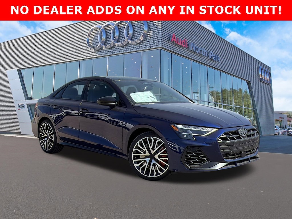 Audi North Park is honored to offer this good-looking 2026 Audi S3 2.0T. Well equipped with 15 Speakers, 4-Wheel Disc Brakes, ABS brakes, Air Conditioning, Alloy wheels, AM/FM radio: SiriusXM(R) with 360L, Audi Connect CARE, Audi Connect NAV and PLUS, Auto High-beam Headlights, Auto-dimming Rear-View mirror, Automatic temperature control, Brake assist, Bumpers: body-color, Compass, Delay-off headlights, Driver door bin, Driver vanity mirror, Dual front impact airbags, Dual front side impact airbags, Electronic Stability Control, Emergency communication system: Audi connect CARE, Exterior Parking Camera Rear, Four wheel independent suspension, Front anti-roll bar, Front Bucket Seats, Front Center Armrest, Front dual zone A/C, Front reading lights, Fully automatic headlights, Garage door transmitter: HomeLink, Headlight cleaning, Heated door mirrors, Heated front seats, Heated Front Sport Seats, Illuminated entry, Knee airbag, Leather steering wheel, Leatherette/Dinamica Seating Surfaces w/Diamond Stitching, Low tire pressure warning, Navigation system: Audi MMI Navigation with Touch Response, Occupant sensing airbag, Outside temperature display, Overhead airbag, Overhead console, Panic alarm, Passenger door bin, Passenger vanity mirror, Power door mirrors, Power driver seat, Power moonroof, Power passenger seat, Power steering, Power windows, Radio data system, Radio: MMI Touch Display with 10.1 Touchscreen, Rain sensing wipers, Rear air conditioning, Rear anti-roll bar, Rear fog lights, Rear reading lights, Rear seat center armrest, Rear side impact airbag, Rear window defroster, Remote keyless entry, Security system, SiriusXM with 360L, SONOS Premium Sound System with 3D Sound, Speed control, Speed-sensing steering, Speed-Sensitive Wipers, Split folding rear seat, Spoiler, Sport steering wheel, Steering wheel mounted audio controls, Tachometer, Telescoping steering wheel, Tilt steering wheel, Traction control, Trip computer, Turn signal indicator mirrors, Variably intermittent wipers, and Wheels: 18 10-Spoke-Star Design.