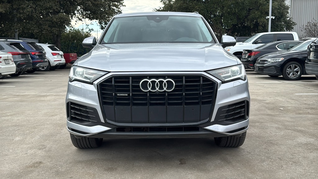 Audi North Park is proud to offer this terrific 2021 Audi Q7 55 Premium Plus. Well equipped with Ambient Interior Lighting Package, Black Optic Exterior Package (Black Door Blades, Black Front & Rear Bumper Inserts, Black Grille, Black Roof Rails, and Black Window Surrounds), Black Optic Package (Wheels: 21 10-Spoke Star-Design Bi-Color Black), Convenience Package (3-Spoke Multifunction Steering Wheel w/Paddles, Audi Phone Box w/Wireless Charging, Heated Auto-Dimming Power Folding Exterior Mirrors, and Topview Camera System), Premium Plus Package (Bang & Olufsen 3D Premium Sound System, Illuminated Door Sills, and Wheels: 20 5-Spoke Turbine-Design), Audi smartphone interface (Apple CarPlay/Android Auto), Auto High-beam Headlights, Heated Front Bucket Seats, Navigation system: Audi MMI Navigation plus with Touch Response, Power Liftgate, Power moonroof, Power passenger seat, Reclining 3rd row seat, 10 Speakers, 3.204 Axle Ratio, 3rd row seats: bench, 4-Wheel Disc Brakes, ABS brakes, Air Conditioning, Alloy wheels, AM/FM radio: SiriusXM, Auto-dimming Rear-View mirror, Automatic temperature control, Brake assist, Bumpers: body-color, Compass, Delay-off headlights, Driver door bin, Driver vanity mirror, Dual front impact airbags, Dual front side impact airbags, Electronic Stability Control, Emergency communication system: Audi connect CARE, PRIME & PLUS, Exterior Parking Camera Rear, Four wheel independent suspension, Front anti-roll bar, Front Bucket Seats, Front Center Armrest, Front dual zone A/C, Front fog lights, Front reading lights, Fully automatic headlights, Garage door transmitter: HomeLink, Genuine wood door panel insert, Heated door mirrors, Heated front seats, Illuminated entry, Leather Seating Surfaces, Leather Shift Knob, Leather steering wheel, Low tire pressure warning, Memory seat, Occupant sensing airbag, Outside temperature display, Overhead airbag, Overhead console, Panic alarm, Passenger door bin, Passenger vanity mirror, Power door mirrors, Power driver seat, Power steering, Power windows, Radio data system, Radio: Audi Sound System, Rain sensing wipers, Rear air conditioning, Rear anti-roll bar, Rear fog lights, Rear reading lights, Rear seat center armrest, Rear window defroster, Rear window wiper, Remote keyless entry, Roof rack: rails only, Security system, Speed control, Speed-sensing steering, Split folding rear seat, Spoiler, Steering wheel memory, Steering wheel mounted audio controls, Tachometer, Telescoping steering wheel, Tilt steering wheel, Traction control, Trip computer, Turn signal indicator mirrors, Variably intermittent wipers, and Wheels: 19 5-Arm-Star Design.