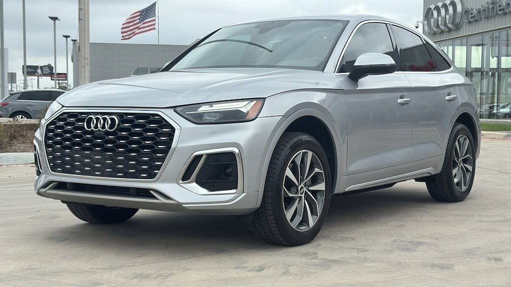 Audi North Park is honored to offer this fantastic 2022 Audi Q5 45 S line Premium. Well equipped with Convenience Package (Audi Advanced Key, Auto-Dimming Power Folding Exterior Mirrors, Driver Seat Memory, Heated Steering Wheel, and SiriusXM All Access Service), 10 Speakers, 4-Wheel Disc Brakes, ABS brakes, Air Conditioning, Alloy wheels, AM/FM radio, Auto High-beam Headlights, Auto-dimming Rear-View mirror, Automatic temperature control, Axle Ratio: TBD, Brake assist, Bumpers: body-color, Compass, Delay-off headlights, Driver door bin, Driver vanity mirror, Dual front impact airbags, Dual front side impact airbags, Electronic Stability Control, Emergency communication system: Audi connect CARE, Exterior Parking Camera Rear, Four wheel independent suspension, Front anti-roll bar, Front Bucket Seats, Front Center Armrest, Front dual zone A/C, Front fog lights, Front reading lights, Garage door transmitter: HomeLink, Genuine wood console insert, Genuine wood dashboard insert, Genuine wood door panel insert, Heated 8-Way Power Front Bucket Sport Seats, Heated door mirrors, Heated front seats, Illuminated entry, Leather Seating Surfaces, Leather Shift Knob, Low tire pressure warning, Occupant sensing airbag, Outside temperature display, Overhead airbag, Overhead console, Panic alarm, Passenger door bin, Passenger vanity mirror, Power door mirrors, Power driver seat, Power Liftgate, Power passenger seat, Power steering, Power windows, Radio data system, Radio: Audi Sound System, Rain sensing wipers, Rear air conditioning, Rear anti-roll bar, Rear fog lights, Rear reading lights, Rear seat center armrest, Rear window defroster, Rear window wiper, Remote keyless entry, Security system, Speed control, Speed-sensing steering, Speed-Sensitive Wipers, Split folding rear seat, Spoiler, Steering wheel mounted audio controls, Tachometer, Telescoping steering wheel, Tilt steering wheel, Traction control, Trip computer, Turn signal indicator mirrors, Variably intermittent wipers, and Wheels: 19 5-Double-Arm Design Bi-Color Finish.
