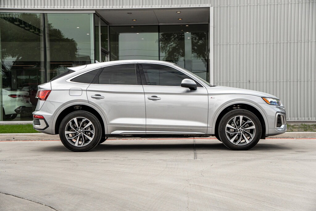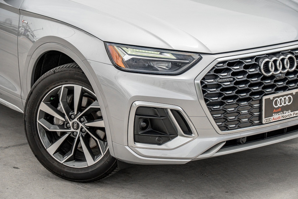 Audi North Park is proud to offer this terrific 2022 Audi Q5 Sportback 45 S line Premium Plus. Well equipped with Navigation Package (Audi Connect PRIME & PLUS and MMI Navigation Plus), ABS brakes, Alloy wheels, Compass, Electronic Stability Control, Front dual zone A/C, Heated door mirrors, Heated front seats, Illuminated entry, Low tire pressure warning, Power Liftgate, Remote keyless entry, Traction control, 10 Speakers, 4-Wheel Disc Brakes, Air Conditioning, AM/FM radio, Auto High-beam Headlights, Auto-dimming Rear-View mirror, Automatic temperature control, Axle Ratio: TBD, Brake assist, Bumpers: body-color, Delay-off headlights, Driver door bin, Driver vanity mirror, Dual front impact airbags, Dual front side impact airbags, Emergency communication system: Audi connect CARE, Exterior Parking Camera Rear, Four wheel independent suspension, Front anti-roll bar, Front Bucket Seats, Front Center Armrest, Front fog lights, Front reading lights, Garage door transmitter: HomeLink, Genuine wood console insert, Genuine wood dashboard insert, Genuine wood door panel insert, Heated 8-Way Power Front Bucket Sport Seats, Leather Seating Surfaces, Leather Shift Knob, Occupant sensing airbag, Outside temperature display, Overhead airbag, Overhead console, Panic alarm, Passenger door bin, Passenger vanity mirror, Power door mirrors, Power driver seat, Power passenger seat, Power steering, Power windows, Radio data system, Radio: Audi Sound System, Rain sensing wipers, Rear air conditioning, Rear anti-roll bar, Rear fog lights, Rear reading lights, Rear seat center armrest, Rear window defroster, Rear window wiper, Security system, Speed control, Speed-sensing steering, Speed-Sensitive Wipers, Split folding rear seat, Spoiler, Steering wheel mounted audio controls, Tachometer, Telescoping steering wheel, Tilt steering wheel, Trip computer, Turn signal indicator mirrors, Variably intermittent wipers, and Wheels: 19 5-Double-Arm Design Bi-Color Finish.