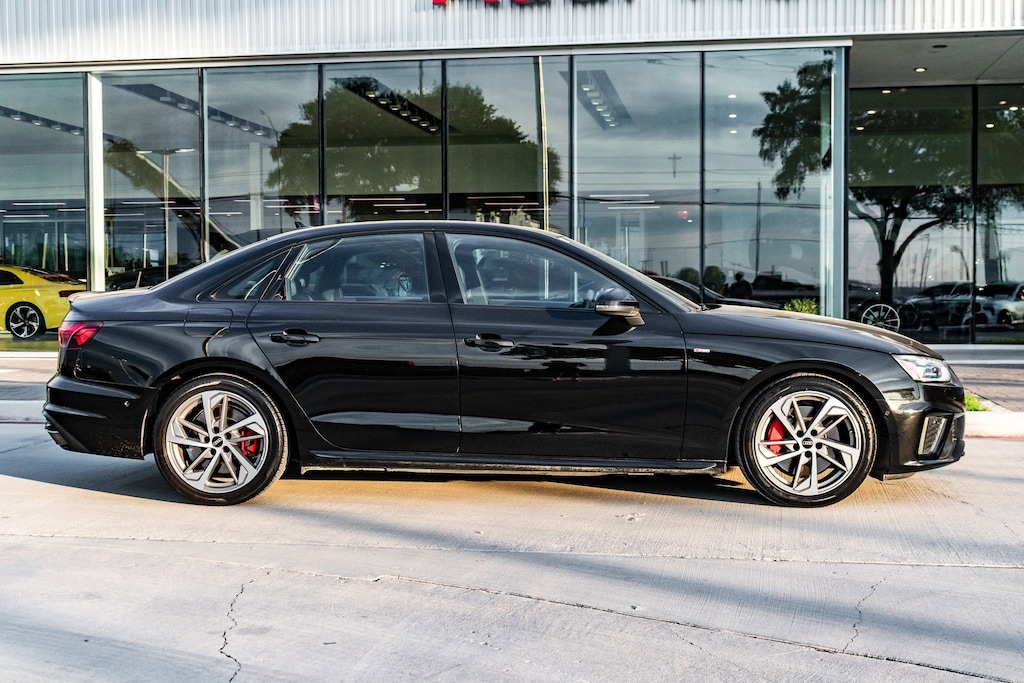 Audi North Park is very proud to offer this stunning-looking 2023 Audi A4 45 S line Prestige. Well equipped with Black Optic Package (Aluminum Ellipse Dark Inlays, Black Audi Rings & Model Badge, Black Exterior Trim & Mirror Housings, Black Side Sill Blades & Rear Lip Spoiler, Dark Chrome Exhaust Tips, Red Brake Calipers, and Wheels: 18 5-Arm Trapezoid Design Titanium Finish), Convenience Package (Adaptive Cruise Control, Alarm System w/Motion Sensor, Audi Advanced Key, Audi Side Assist w/Pre Sense Rear, Auto-Dimming Exterior Mirrors w/Memory, Heated Steering Wheel, Memory for Driver's Seat, Parking System Plus, and SiriusXM w/360L), LED Interior Lighting Plus Package, Navigation Package (Audi Connect PLUS and MMI Navigation Plus), Prestige Package (2 Rear USB Charge Ports, Animation for Headlights & Taillights, Audi Active Lane Assist, Audi Phone Box, Audi Virtual Cockpit Plus, Bang & Olufsen Sound System w/3D Sound, Dual Pane Acoustic Glass for Front Side Windows, Hands-On Detection Steering Wheel, Head-Up Display, Heated Rear Seats, Leatherette Covered Center Console & Door Armrests, Matrix-Design LED Headlights w/Washers, Park Assist, Power Folding Exterior Mirrors, Top View Camera System, Traffic Jam Assist, and Traffic Sign Recognition), S-Line Interior Package (Brushed Aluminum Inlays, Leather/Dinamica Seating Surfaces, and Stainless Steel Pedal Caps), 10 Speakers, 4-Wheel Disc Brakes, ABS brakes, Air Conditioning, Alloy wheels, AM/FM radio, Anti-whiplash front head restraints, Audi smartphone interface (Apple CarPlay/Android Auto), Auto High-beam Headlights, Auto-dimming Rear-View mirror, Automatic temperature control, Brake assist, Bumpers: body-color, Compass, Delay-off headlights, Driver door bin, Driver vanity mirror, Dual front impact airbags, Dual front side impact airbags, Electronic Stability Control, Emergency communication system: Audi connect CARE, Exterior Parking Camera Rear, Four wheel independent suspension, Front anti-roll bar, Front Bucket Seats, Front Center Armrest, Front dual zone A/C, Front fog lights, Front reading lights, Garage door transmitter: HomeLink, Genuine wood dashboard insert, Genuine wood door panel insert, Heated door mirrors, Heated front seats, Heated Front Sport Bucket Seats, Illuminated entry, Knee airbag, Leather Seating Surfaces, Leather Shift Knob, Leather steering wheel, Low tire pressure warning, Occupant sensing airbag, Outside temperature display, Overhead airbag, Overhead console, Panic alarm, Passenger door bin, Passenger vanity mirror, Power door mirrors, Power driver seat, Power moonroof, Power passenger seat, Power steering, Power windows, Radio data