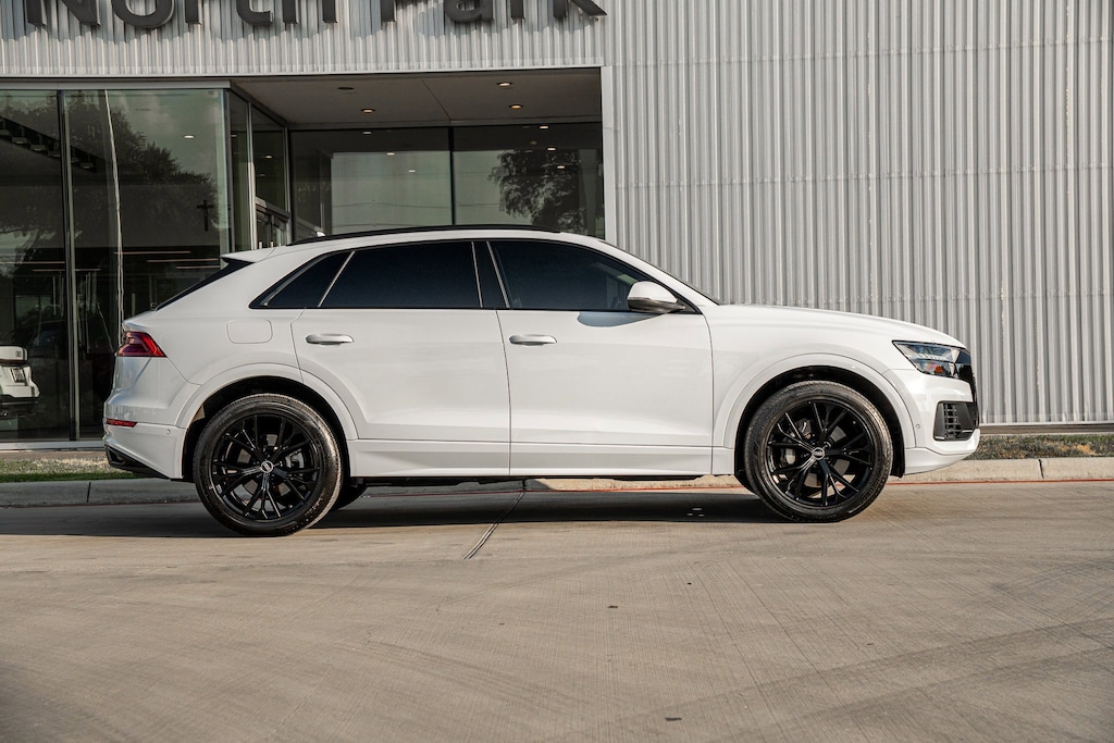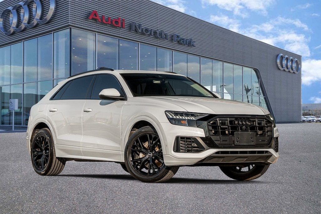 Audi North Park is excited to offer this fantastic-looking 2023 Audi Q8 55 Premium. Well equipped with Black Optic Package (Black Roof Rails, High-Gloss Black Exterior Elements, and Wheels: 21 5-W-Spoke-Design Graphite Gray Finish), Convenience Package (Audi Adaptive Cruise Assist w/Lane Guidance, Audi Phone Box w/Wireless Charging, Heated Steering Wheel, and Top View Camera System), 10 Speakers, 4-Wheel Disc Brakes, ABS brakes, Adaptive suspension, Air Conditioning, Alloy wheels, AM/FM radio: SiriusXM, Auto High-beam Headlights, Auto-dimming door mirrors, Auto-dimming Rear-View mirror, Automatic temperature control, Axle Ratio: TBD, Brake assist, Bumpers: body-color, Compass, Delay-off headlights, Driver door bin, Driver vanity mirror, Dual front impact airbags, Dual front side impact airbags, Electronic Stability Control, Emergency communication system: Audi connect CARE, Exterior Parking Camera Rear, Four wheel independent suspension, Front anti-roll bar, Front Bucket Seats, Front Center Armrest, Front dual zone A/C, Front fog lights, Front reading lights, Fully automatic headlights, Garage door transmitter: HomeLink, Genuine wood door panel insert, Headlight cleaning, Heated door mirrors, Heated Front Bucket Seats, Heated front seats, Illuminated entry, Leather Seating Surfaces, Leather Shift Knob, Leather steering wheel, Low tire pressure warning, Memory seat, Navigation system: Audi MMI Navigation plus with Touch Response, Occupant sensing airbag, Outside temperature display, Overhead airbag, Overhead console, Panic alarm, Passenger door bin, Passenger vanity mirror, Power door mirrors, Power driver seat, Power Liftgate, Power moonroof: Panoramic, Power passenger seat, Power steering, Power windows, Radio data system, Radio: Audi MMI Nav Plus w/MMI Touch Response, Rain sensing wipers, Rear air conditioning, Rear anti-roll bar, Rear fog lights, Rear reading lights, Rear seat center armrest, Rear side impact airbag, Rear window defroster, Rear window wiper, Remote keyless entry, Security system, Speed control, Speed-sensing steering, Split folding rear seat, Spoiler, Steering wheel memory, Steering wheel mounted audio controls, Tachometer, Telescoping steering wheel, Tilt steering wheel, Traction control, Trip computer, Turn signal indicator mirrors, Variably intermittent wipers, and Wheels: 21 5-Segment-Spoke Design.