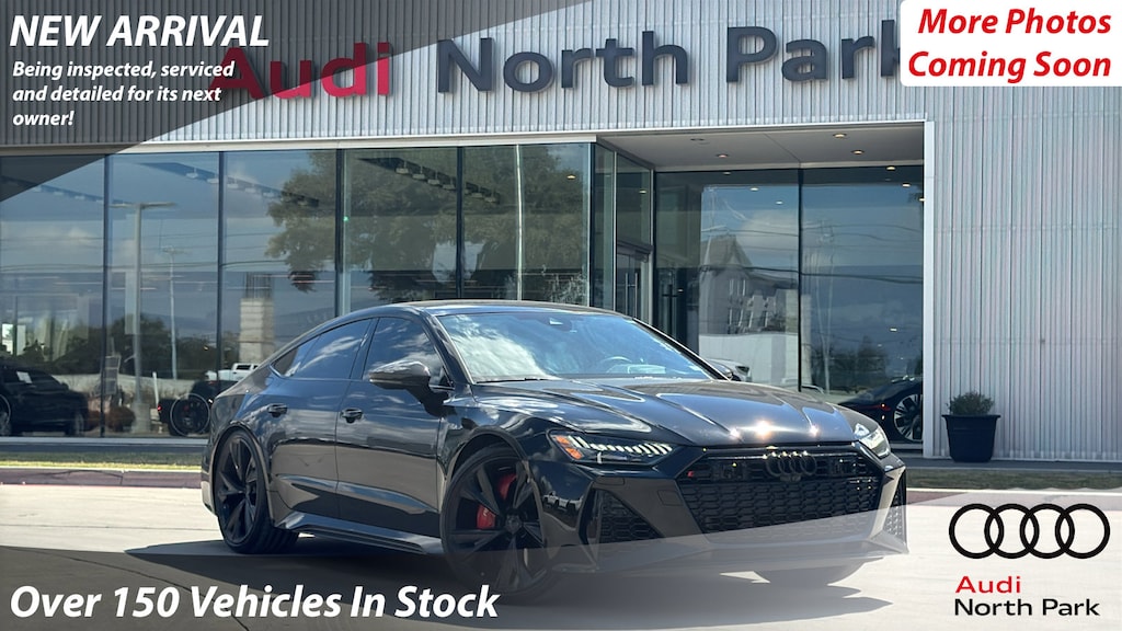 Audi North Park is pleased to offer this good-looking 2023 Audi RS 7 4.0T. Well equipped with Driver Assistance Package (Adaptive Cruise Assist w/Lane Guidance, Audi Pre Sense Rear, Audi Side Assist w/Rear Cross Traffic Assist, Intersection Assist, and Traffic Sign Recognition), ABS brakes, Adaptive suspension, AM/FM radio: SiriusXM w/ 360L, Audi Side Assist, Auto High-beam Headlights, Bang & Olufsen Premium Sound System w/3D Sound, Exterior Parking Camera Rear, Heated & Ventilated RS Sport Seats Plus, Heated front seats, Heated steering wheel, Navigation system: MMI Navigation plus, Power Liftgate, Power moonroof, Red Brake Calipers, Remote Park Assist Plus, Sport Exhaust, Steering wheel mounted audio controls, Ventilated front seats, Wheels: 22 5-V-Spoke Structured Silver Finish, 16 Speakers, 4-Wheel Disc Brakes, Air Conditioning, Alloy wheels, Auto tilt-away steering wheel, Auto-dimming door mirrors, Auto-dimming Rear-View mirror, Auto-leveling suspension, Automatic temperature control, Brake assist, Bumpers: body-color, Compass, Delay-off headlights, Driver door bin, Driver vanity mirror, Dual front impact airbags, Dual front side impact airbags, Electronic Stability Control, Emergency communication system: Audi connect CARE (limited time subscription), Four wheel independent suspension, Front anti-roll bar, Front Bucket Seats, Front Center Armrest, Front dual zone A/C, Front fog lights, Front reading lights, Garage door transmitter: HomeLink, Headlight cleaning, Heated door mirrors, Illuminated entry, Knee airbag, Leather Shift Knob, Leather steering wheel, Low tire pressure warning, Memory seat, Occupant sensing airbag, Outside temperature display, Overhead airbag, Overhead console, Panic alarm, Passenger door bin, Passenger vanity mirror, Power door mirrors, Power driver seat, Power passenger seat, Power steering, Power windows, Radio data system, Radio: Audi MMI Navigation Plus, Rain sensing wipers, Rear air conditioning, Rear anti-roll bar, Rear dual zone A/C, Rear fog lights, Rear reading lights, Rear seat center armrest, Rear side impact airbag, Rear window defroster, Remote keyless entry, Security system, Speed control, Speed-sensing steering, Speed-Sensitive Wipers, Split folding rear seat, Spoiler, Sport steering wheel, Steering wheel memory, Tachometer, Telescoping steering wheel, Tilt steering wheel, Traction control, Trip computer, Turn signal indicator mirrors, Valcona Leather Seat Trim, and Variably intermittent wipers.