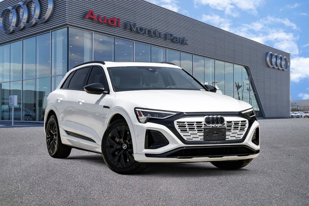 Audi North Park is honored to offer this good-looking 2024 Audi Q8 e-tron Prestige. Well equipped with Launch Edition (3-Spoke Steering Wheel, Anthracite Gray Audi Rings, Black Exterior Mirrors, Black Headliner, Black Roof Rails, Body Color Grille, High-Gloss Black Front Grille & Mask, High-Gloss Black Rear Diffuser Inlay, High-Gloss Black Window Surrounds, High-Tech Mesh Anthracite Inlays, Illuminated Door Sills w/S Logo, Puddle Lights w/e-tron Edition Logo, S line Exterior, Valcona/Milano Leather Seat Trim, and Wheels: 21 Metallic Black Finish), 10 Speakers, 4-Wheel Disc Brakes, 9.08 Axle Ratio, ABS brakes, Adaptive suspension, Air Conditioning, Alloy wheels, Auto High-beam Headlights, Auto-dimming door mirrors, Auto-dimming Rear-View mirror, Auto-leveling suspension, Automatic temperature control, Brake assist, Bumpers: body-color, Compass, Delay-off headlights, Driver door bin, Driver vanity mirror, Dual front impact airbags, Dual front side impact airbags, Electronic Stability Control, Emergency communication system: Audi connect CARE (limited time subscription), Exterior Parking Camera Rear, Four wheel independent suspension, Front anti-roll bar, Front Bucket Seats, Front Center Armrest, Front dual zone A/C, Front reading lights, Fully automatic headlights, Garage door transmitter: HomeLink, Heated 8-Way Power Front Seats, Heated door mirrors, Heated front seats, Heated steering wheel, Illuminated entry, Leather Seating Surfaces, Leather steering wheel, Low tire pressure warning, Memory seat, Navigation system: MMI Navigation plus, Occupant sensing airbag, Outside temperature display, Overhead airbag, Overhead console, Panic alarm, Passenger door bin, Passenger vanity mirror, Power door mirrors, Power driver seat, Power Liftgate, Power moonroof: Panoramic, Power passenger seat, Power steering, Power windows, Radio data system, Radio: Audi Sound System, Rear air conditioning, Rear anti-roll bar, Rear dual zone A/C, Rear fog lights, Rear reading lights, Rear seat center armrest, Rear window defroster, Rear window wiper, Remote keyless entry, Security system, Speed control, Speed-sensing steering, Split folding rear seat, Spoiler, Steering wheel memory, Steering wheel mounted audio controls, Telescoping steering wheel, Tilt steering wheel, Traction control, Trip computer, Turn signal indicator mirrors, Variably intermittent wipers, and Wheels: 20 5-Arm Aero Ring Design.