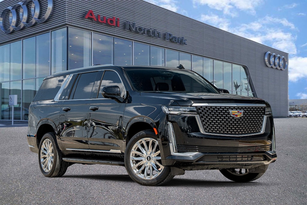 Audi North Park is very proud to offer this stunning 2023 Cadillac Escalade ESV Premium. Well equipped with Preferred Equipment Group 1SB (Adaptive Cruise Control, AKG Studio 19-Speaker Audio System, Automatic Seat Belt Tightening, Door Lock & Latch Shields, Enhanced Automatic Emergency Braking, Enhanced Automatic Parking Assist, Glass Breakage Sensor, Heated & Ventilated Driver & Front Passenger Seats, Lane Change Alert w/Side Blind Zone Alert, Mechanical Limited-Slip Differential, Power Panoramic Tilt-Sliding Sunroof, Rear Camera Mirror, Rear Camera Mirror Washer, Rear Cross Traffic Alert, Reconfigurable Full-Color Head-Up Display, Reverse Automatic Braking, Running Board Assist Steps, Theft-Deterrent Alarm System, Vehicle Inclination Sensor, and Vehicle Interior Movement Sensor), Navigation System, 16.9 Diagonal OLED Infotainment Screen, 19 Speakers, 2-Presets Memory For Driver Seat Adjuster, 2-Way Driver Power Lumbar Seat Adjuster, 2-Way Front Passenger Power Lumbar Seat Adjuster, 3.23 Axle Ratio, 3rd row seats: split-bench, 4-Way Power Driver Lumbar Seat Adjuster, 4-Way Power Front Passenger Lumbar Seat Adjuster, 4-Wheel Disc Brakes, 8-Way Power Driver Seat Adjuster, 8-Way Power Front Passenger Seat Adjuster, ABS brakes, Air Conditioning, Alloy wheels, AM/FM radio: SiriusXM with 360L, Apple CarPlay/Android Auto, Audio memory, Auto High-beam Headlights, Auto tilt-away steering wheel, Auto-dimming door mirrors, Automatic temperature control, Brake assist, Bumpers: body-color, Compass, Delay-off headlights, Driver door bin, Driver vanity mirror, Dual front impact airbags, Dual front side impact airbags, Electronic Stability Control, Emergency communication system: OnStar and Cadillac connected services capable, Exterior Parking Camera Rear, Four wheel independent suspension, Front anti-roll bar, Front Bucket Seats, Front Center Armrest w/Storage, Front dual zone A/C, Front reading lights, Fully automatic headlights, Garage door transmitter, HD Radio, Heads-Up Display, Heated door mirrors, Heated Driver & Front Passenger Seats, Heated front seats, Heated rear seats, Heated steering wheel, Illuminated entry, Leather Seating Surfaces w/Mini-Chevron Perf Inserts, Low tire pressure warning, Memory seat, Not Equipped w/2nd Row Express-Up Window Control, Not Equipped w/4-Way Driver & Fr Pass Pwr Lumbar, Occupant sensing airbag, Outside temperature display, Overhead airbag, Overhead console, Panic alarm, Passenger door bin, Passenger vanity mirror, Power door mirrors, Power driver seat, Power Liftgate, Power moonroof, Power passenger seat, Power steering, Power windows, Premium Smooth Ride Suspension, Radio data system, Radio: AM/FM w/Navigation, Rain sensing wipers, Rear air conditioning, Rear anti-roll bar, Rear reading lights, Rear window defroster, Rear window wiper, Remote keyless entry, Security system, SiriusXM w/360L, Speed control, Split folding rear seat, Spoiler, Steering wheel memory, Steering wheel mounted audio controls, Super Cruise, Tachometer, Teen Driver, Telescoping steering wheel, Tilt steering wheel, Traction control, Trip computer, Turn signal indicator mirrors, Variably intermittent wipers,