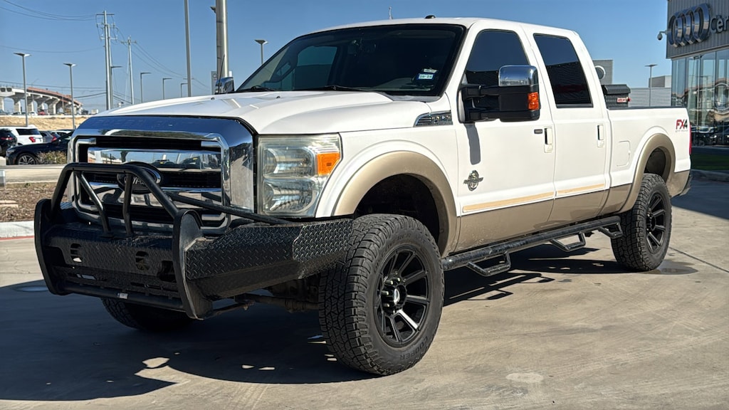 Audi North Park is honored to offer this gorgeous 2012 Ford F-250SD Lariat. Well equipped with 5th Wheel/Gooseneck Hitch Prep Package, Chrome Package (18 Chrome Clad Cast Aluminum Wheels, 6 Angular Chrome Step Bars, Bright Metallic Exhaust Tip, and Unique Chrome Mirror Caps), FX4 Off-Road Package (Colored Front & Rear Rancho Branded Shocks and Hill Descent Control), GVWR: 10,000 lb Payload Package, Lariat Ultimate Package (Memory Power Adjustable Pedals, Memory Power Heated/Cooled Driver Seat, Memory PowerScope Trailer-Tow Mirrors, Power Heated/Cooled Passenger Seat, Power Moonroof, Radio: Navigation System w/HD Radio, Rear-View Camera, Remote Start System, Satellite Radio, and Tailgate Step & Handle w/TailGate Assist), Order Code 608A, ABS brakes, AM/FM radio: SIRIUS, Engine Block Heater, Extra Heavy-Duty 200-Amp Alternator, Fully automatic headlights, Gooseneck Hitch Kit, Split folding rear seat, 18 Bright Machined Cast Alum. 6-Spoke Wheels, 20 Chrome Clad Cast Aluminum Wheels, 4-Wheel Disc Brakes, 9 Speakers, Adjustable pedals, Air Conditioning, All-Weather Floor Mats, Alloy wheels, Auto-dimming Rear-View mirror, Automatic temperature control, Bodyside Molding, Brake assist, Bumpers: chrome, CD player, Compass, Delay-off headlights, Driver door bin, Driver vanity mirror, Dual front impact airbags, Dual front side impact airbags, Electronic Stability Control, Front anti-roll bar, Front Bucket Seats, Front Center Armrest, Front dual zone A/C, Front fog lights, Front reading lights, Heated door mirrors, Illuminated entry, Leather steering wheel, Low tire pressure warning, Outside temperature display, Overhead airbag, Overhead console, Panic alarm, Passenger door bin, Passenger vanity mirror, Power door mirrors, Power driver seat, Power passenger seat, Power steering, Power windows, Premium Leather Seating Surfaces 40/Console/40, Radio data system, Radio: Premium AM/FM Stereo w/Single-CD/MP3 Player, Rear Parking Sensors, Rear reading lights, Rear seat center armrest, Rear step bumper, Rear window defroster, Remote keyless entry, Security system, Speed control, Steering wheel mounted audio controls, Tachometer, Telescoping steering wheel, Tilt steering wheel, Traction control, Trip computer, Turn signal indicator mirrors, Universal Garage Door Opener, Upfitter Switches (4), and Variably intermittent wipers.