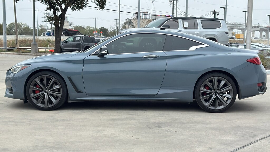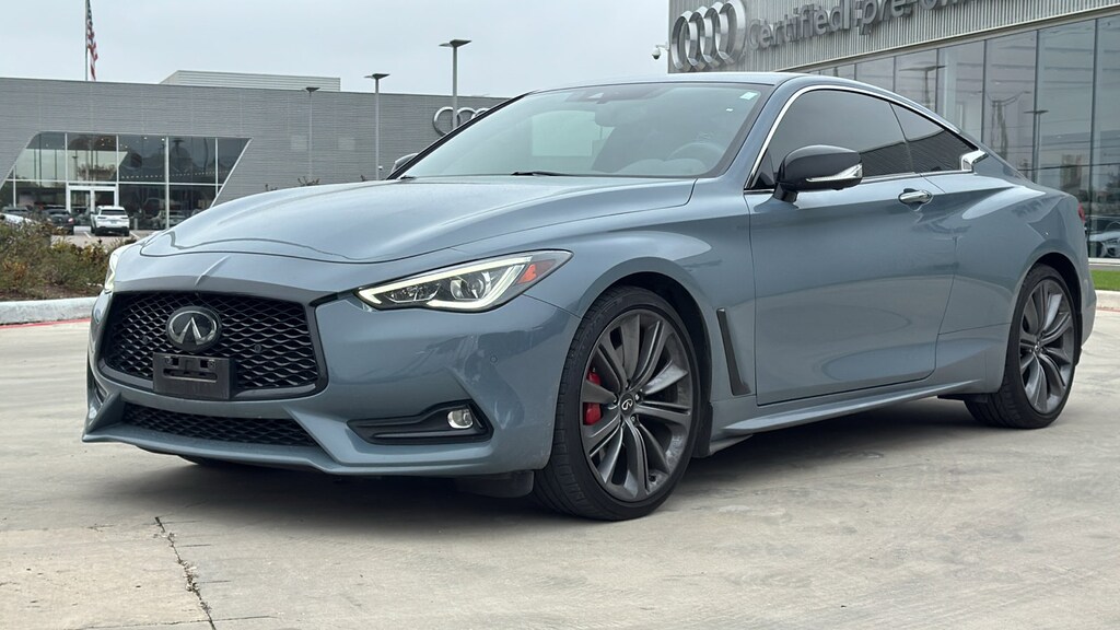 Audi North Park is pleased to offer this fantastic 2021 INFINITI Q60 Red Sport 400. Well equipped with Cargo Package (Cargo Net, First Aid Kit, and Trunk Protector), ABS brakes, Adaptive suspension, AM/FM radio: SiriusXM, Apple CarPlay/Android Auto, Auto High-beam Headlights, Blind Spot Warning, Fully automatic headlights, Heated Front Bucket Seats, Heated steering wheel, Navigation system: INFINITI InTouch Navigation, Power moonroof, Power passenger seat, Radio: INFINITI InTouch w/AM/FM/HD/CD/Navigation, Steering wheel mounted audio controls, 13 Speakers, 4-Wheel Disc Brakes, Air Conditioning, Alloy wheels, Auto tilt-away steering wheel, Auto-dimming door mirrors, Auto-dimming Rear-View mirror, Automatic temperature control, Brake assist, Bumpers: body-color, CD player, Compass, Delay-off headlights, Driver door bin, Driver vanity mirror, Dual front impact airbags, Dual front side impact airbags, Electronic Stability Control, Emergency communication system: INFINITI Connection, Exterior Welcome Lighting, Four wheel independent suspension, Front anti-roll bar, Front Bucket Seats, Front Center Armrest, Front dual zone A/C, Front fog lights, Front reading lights, Garage door transmitter: HomeLink, Heated door mirrors, Heated front seats, Illuminated entry, Illuminated Kick Plate, Leather Shift Knob, Leather steering wheel, Literature Kit, Low tire pressure warning, Memory seat, Occupant sensing airbag, Outside temperature display, Overhead airbag, Overhead console, Panic alarm, Passenger door bin, Passenger vanity mirror, Power door mirrors, Power driver seat, Power steering, Power windows, Premium Paint, Radio data system, Rain sensing wipers, Rear anti-roll bar, Rear window defroster, Remote keyless entry, Security system, Semi-Aniline Leather-Appointed Seating Surfaces, Speed control, Speed-sensing steering, Speed-Sensitive Wipers, Steering wheel memory, Tachometer, Telescoping steering wheel, Tilt steering wheel, Traction control, Trip computer, Turn signal indicator mirrors, Variably intermittent wipers, and Wheels: 20 Aluminum-Alloy Sport.