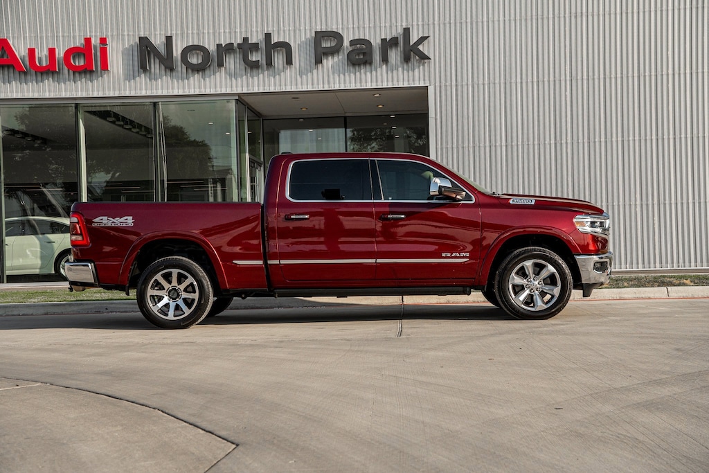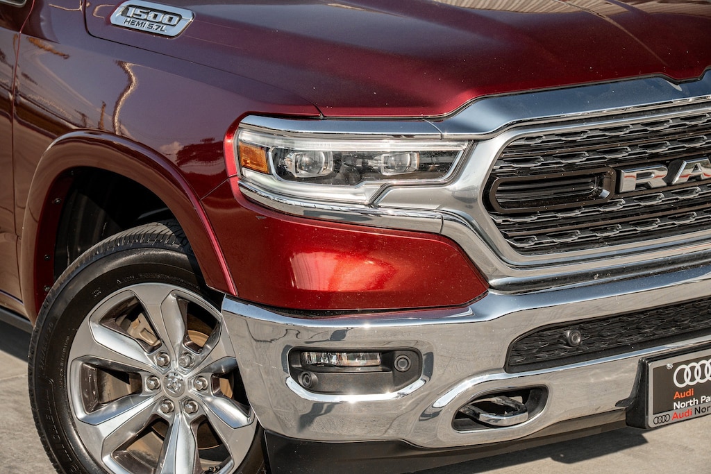 Audi North Park is pleased to offer this attractive 2019 Ram 1500 Limited. Well equipped with Limited Level 1 Equipment Group (Adaptive Cruise Control w/Stop & Go, Advanced Brake Assist, Full Speed Forward Collision Warning Plus, harman/kardon 19 Speaker Premium Sound, Lane Keep Assist, Parallel & Perp Park Assist w/Stop, and Ventilated Rear Seats), Off Road Group (E-Locker Rear Axle, Front Extra HD Shock Absorbers, Hill Descent Control, Off Road Decals, and Rear Extra HD Shock Absorbers), Quick Order Package 25M Limited, Trailer Tow Group (Power Chrome Trailer Tow Mirrors, Trailer Brake Control, and Trailer Tow Mirrors), 1-Yr SiriusXM Guardian Trial, 12 Touchscreen Display, Apple CarPlay, Auto High-beam Headlights, Disassociated Touchscreen Display, Dome Dual LED Reading Lamp, Dual-Pane Panoramic Sunroof, Fully automatic headlights, Google Android Auto, GPS Antenna Input, GPS Navigation, HD Radio, Heated front seats, Heated rear seats, Heated steering wheel, Integrated Center Stack Radio, LED Dome/Reading Lamp, Navigation System, No Satellite Coverage w/HI/AK/PR/VI/GU, ParkView Rear Back-Up Camera, Radio: Uconnect 12 w/Navigation, SiriusXM Satellite Radio, SiriusXM Traffic Plus, SiriusXM Travel Link, SiriusXM w/360L, USB Host Flip, Ventilated front seats, 10 Speakers, 3.21 Rear Axle Ratio, 3.92 Rear Axle Ratio, 33 Gallon Fuel Tank, 4-Wheel Disc Brakes, 48V Belt Starter Generator, ABS brakes, Adjustable pedals, Air Conditioning, Alloy wheels, AM/FM radio: SiriusXM with 360L, Apple CarPlay/Android Auto, Audio memory, Auto-dimming door mirrors, Auto-dimming Rear-View mirror, Auto-leveling suspension, Automatic temperature control, Bodyside moldings, Brake assist, Bumpers: chrome, Compass, Delay-off headlights, Driver door bin, Driver vanity mirror, Dual front impact airbags, Dual front side impact airbags, Electronic Stability Control, Emergency communication system: SiriusXM Guardian, Front anti-roll bar, Front Bucket Seats, Front Center Armrest w/Storage, Front dual zone A/C, Front fog lights, Front reading lights, Front wheel independent suspension, Garage door transmitter, Genuine wood console insert, Genuine wood dashboard insert, Genuine wood door panel insert, Heated door mirrors, Illuminated entry, Leather steering wheel, Low tire pressure warning, Memory seat, Occupant sensing airbag, Outside temperature display, Overhead airbag, Overhead console, Panic alarm, Passenger door bin, Passenger vanity mirror, Pedal memory, Power door mirrors, Power driver seat, Power passenger seat, Power steering, Power windows, Premium Leather Trimmed Bucket Seats, Radio data system, Rain sensing wipers, Rear anti-roll bar, Rear seat center armrest, Rear step bumper, Rear window defroster, Remote CD player, Remote keyless ent