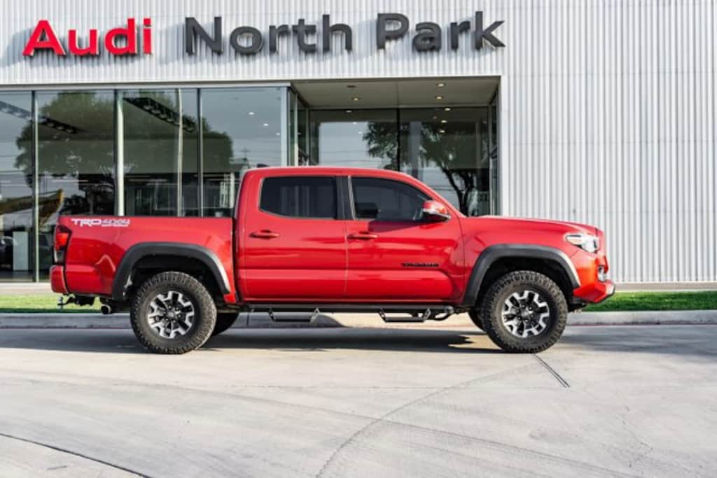 Audi North Park is proud to offer this gorgeous 2019 Toyota Tacoma . Well equipped with TRD Premium Sport Package (120V/400W Deck Mounted AC Power, Auto-Dimming Inside Rear-View Mirror w/Compass, Automatic Headlights, Color-Keyed Overfenders, Dual Zone Automatic Climate Control, Engine Immobilizer, Heated Front Seats, Leather Seat Trim, LED Daytime Running Lamps, Power Sliding Rear Window w/Privacy Glass, Power Tilt/Slide Moonroof, Remote Keyless Entry System, Variable Intermittent Wipers, and Wide Angle Front Fog Lamps), ABS brakes, Auto High-beam Headlights, Entune App Suite, Exterior Parking Camera Rear, Radio: Entune Premium w/AM/FM/CD/Nav/App Suite, Steering wheel mounted audio controls, Air Conditioning, Anti-whiplash front head restraints, Brake assist, Bumpers: body-color, CD player, Driver door bin, Dual front impact airbags, Dual front side impact airbags, Electronic Stability Control, Front anti-roll bar, Front Bucket Seats, Front Center Armrest, Front reading lights, Front wheel independent suspension, Illuminated entry, Knee airbag, Low tire pressure warning, Occupant sensing airbag, Outside temperature display, Overhead airbag, Overhead console, Passenger door bin, Power door mirrors, Power steering, Power windows, Rear step bumper, Speed control, Speed-sensing steering, Split folding rear seat, Tachometer, Telescoping steering wheel, Tilt steering wheel, and Traction control.