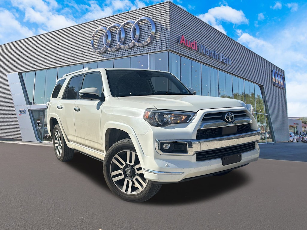Audi North Park is proud to offer this outstanding, reliable 2021 Toyota 4Runner Limited. Well equipped with All-Weather Floor Liners/Cargo Tray Package (TMS), Dual Power Ports/Quick Charge Cable Package (TMS) (DISC) (Quick Charge Cable (TMS)), Redwood w/Leather Seat Trim, Apple CarPlay/Android Auto, Auto High-beam Headlights, Exterior Parking Camera Rear, Fully automatic headlights, Heated front seats, Heated/Ventilated Front Bucket Seats, Moonroof w/Tilt Up & Slide, Navigation System, Power moonroof, Power passenger seat, Radio: Premium JBL Audio w/Navigation, Steering wheel mounted audio controls, Ventilated front seats, 15 Speakers, 20 x 7.5 Unique Dual 6-Spoke Alloy Wheels, 3.727 Axle Ratio, 4-Wheel Disc Brakes, ABS brakes, Air Conditioning, Alloy wheels, AM/FM radio: SiriusXM, Anti-whiplash front head restraints, Auto-dimming Rear-View mirror, Automatic temperature control, Body Color Heated Mirrors, Brake assist, Bumpers: body-color, Compass, Delay-off headlights, Driver door bin, Driver vanity mirror, Dual front impact airbags, Dual front side impact airbags, Electronic Stability Control, Emergency communication system: Safety Connect with 1-year trial, Front anti-roll bar, Front Bucket Seats, Front Center Armrest, Front dual zone A/C, Front fog lights, Front reading lights, Front wheel independent suspension, Garage Door Opener, Garage door transmitter: HomeLink, Heated door mirrors, Illuminated entry, Knee airbag, Leather Seat Trim, Low tire pressure warning, Memory seat, Occupant sensing airbag, Outside temperature display, Overhead airbag, Overhead console, Panic alarm, Passenger door bin, Passenger vanity mirror, Power door mirrors, Power driver seat, Power steering, Power windows, Rear anti-roll bar, Rear seat center armrest, Rear window defroster, Rear window wiper, Remote keyless entry, Right & Left Individual Air Conditioner, Roof rack: rails only, Security system, Speed control, Speed-sensing steering, Split folding rear seat, Spoiler, Tachometer, Telescoping steering wheel, Tilt steering wheel, Traction control, Trip computer, Turn signal indicator mirrors, and Variably intermittent wipers.